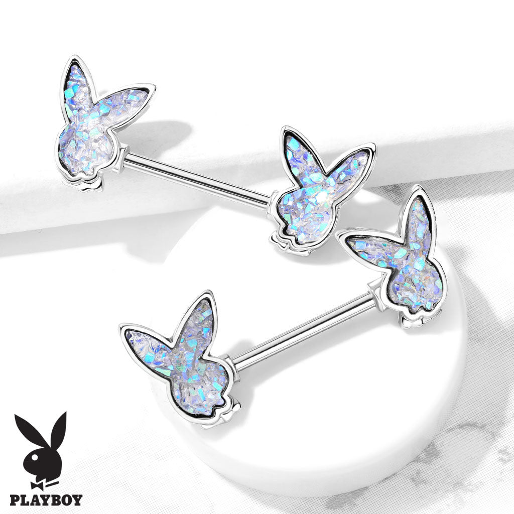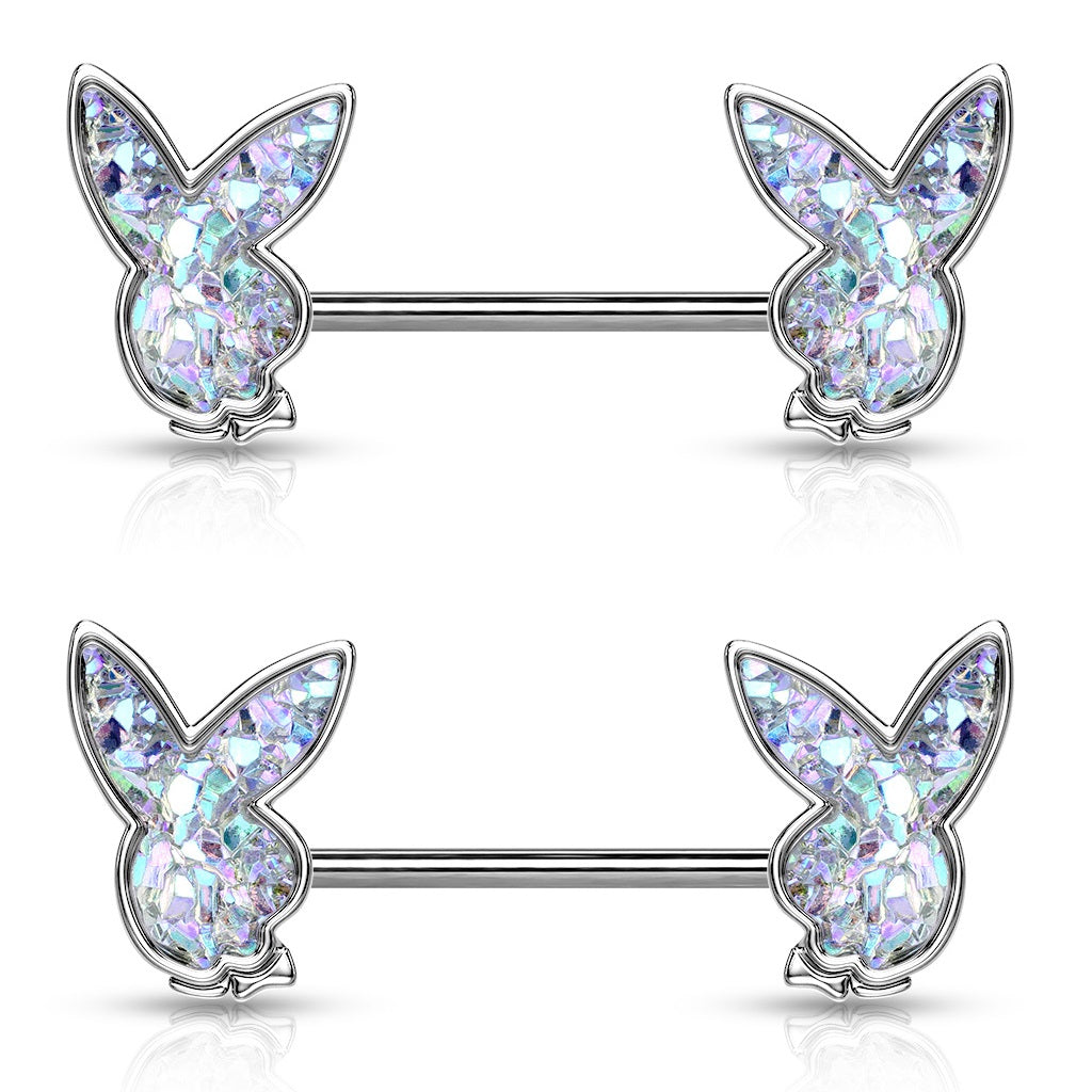 Druzy Stone Playboy Bunny Nipple Barbells - Pair - 316L Stainless Steel