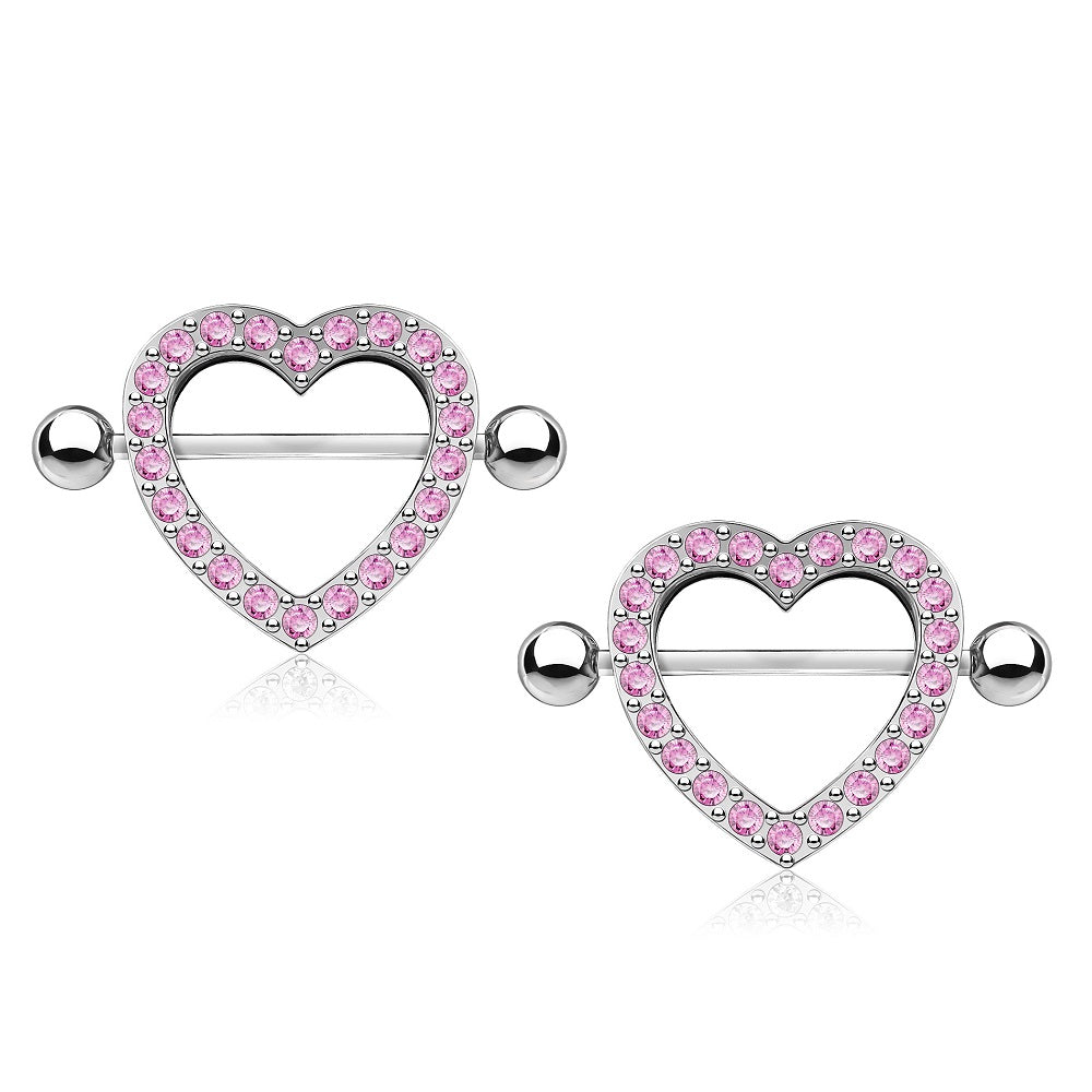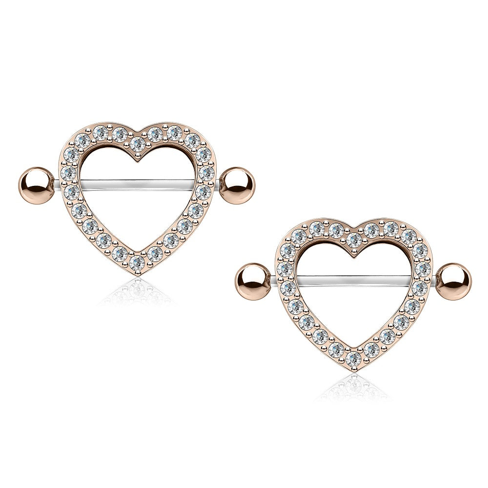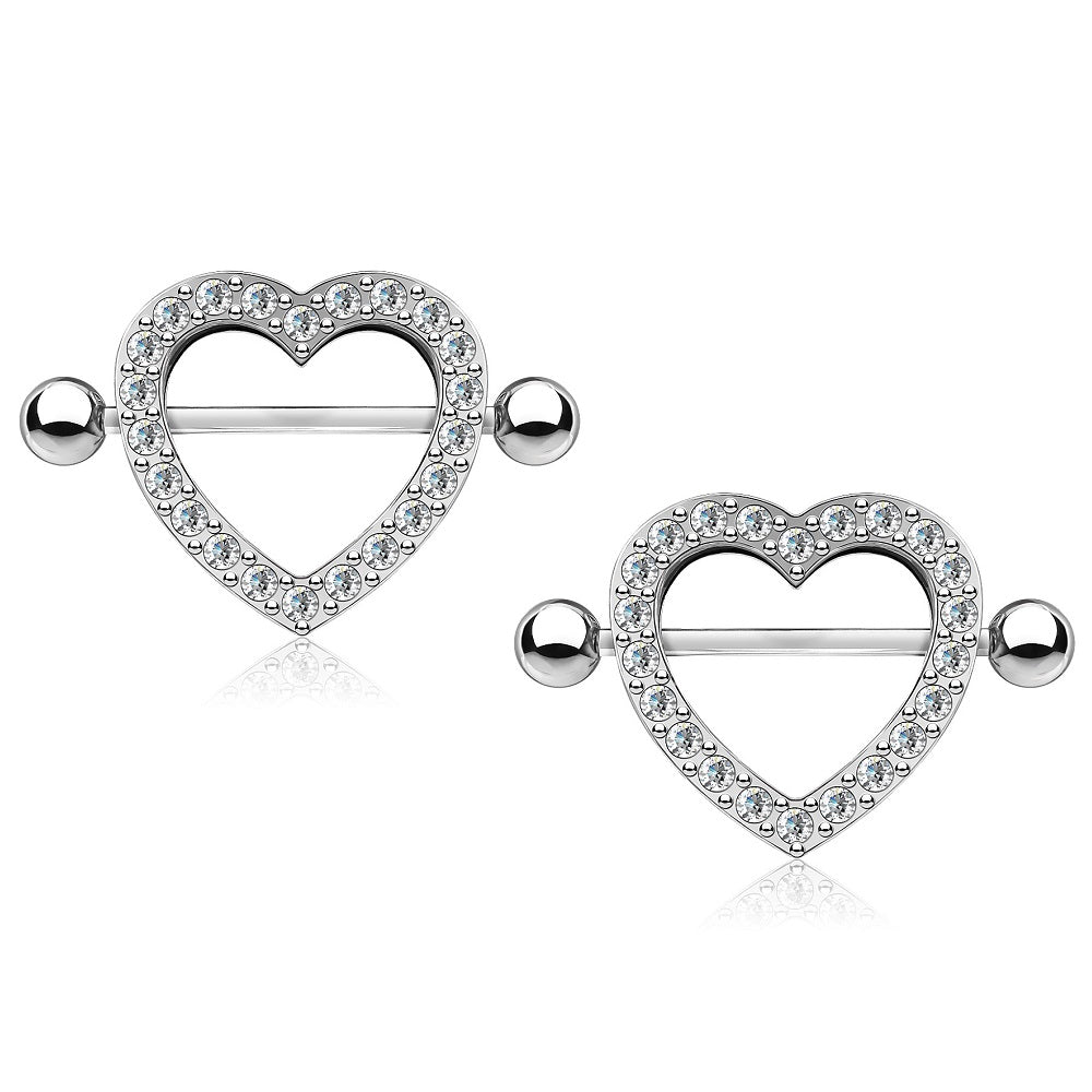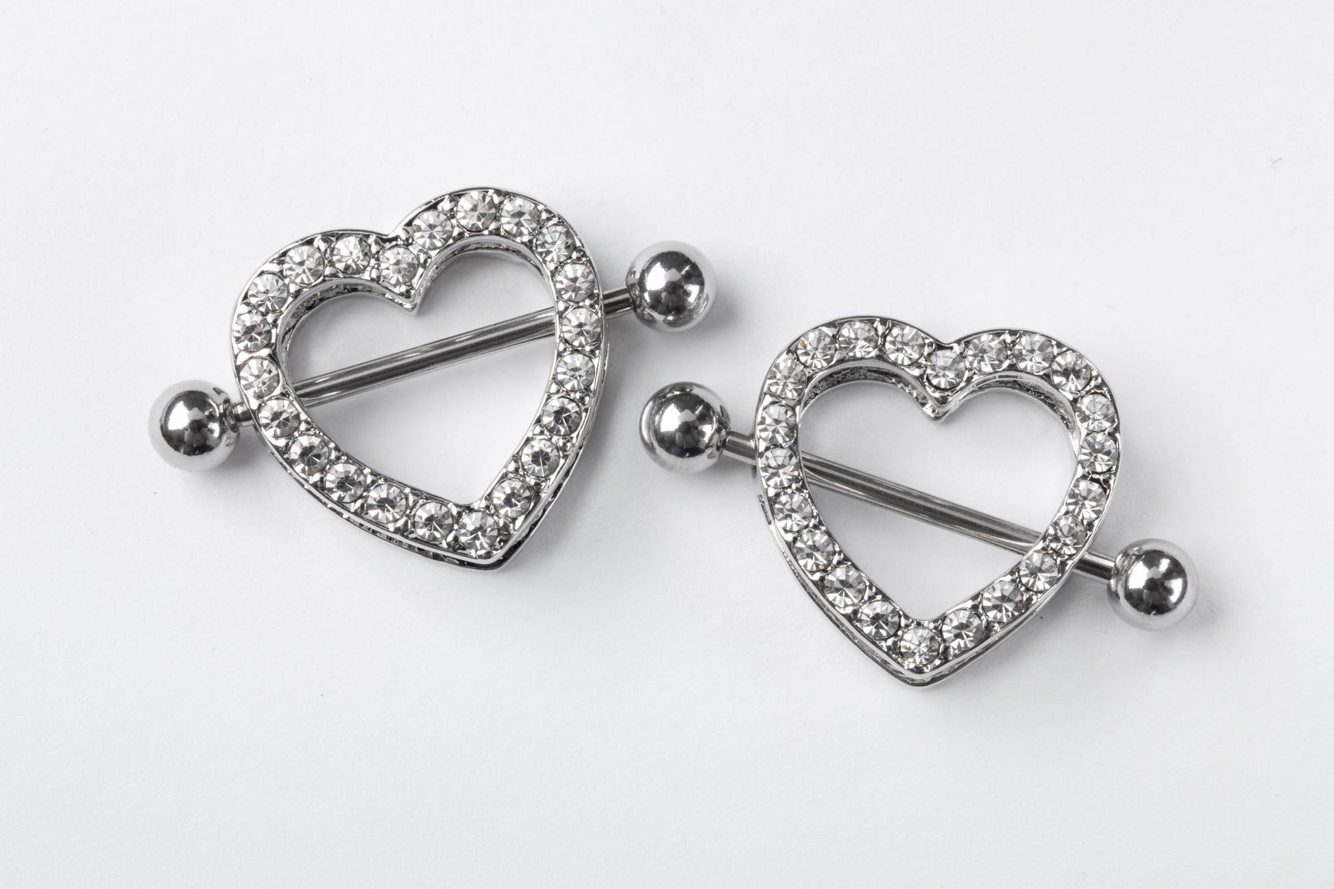 Gem Paved Heart Nipple Shields - 316L Stainless Steel