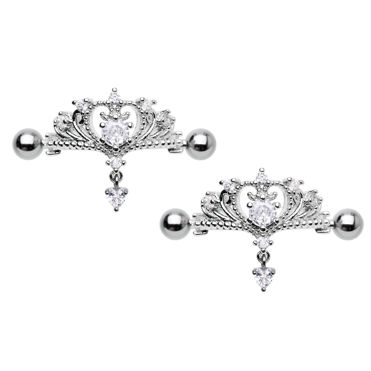 Crystal Tiara Nipple Shields - Pair - Stainless Steel