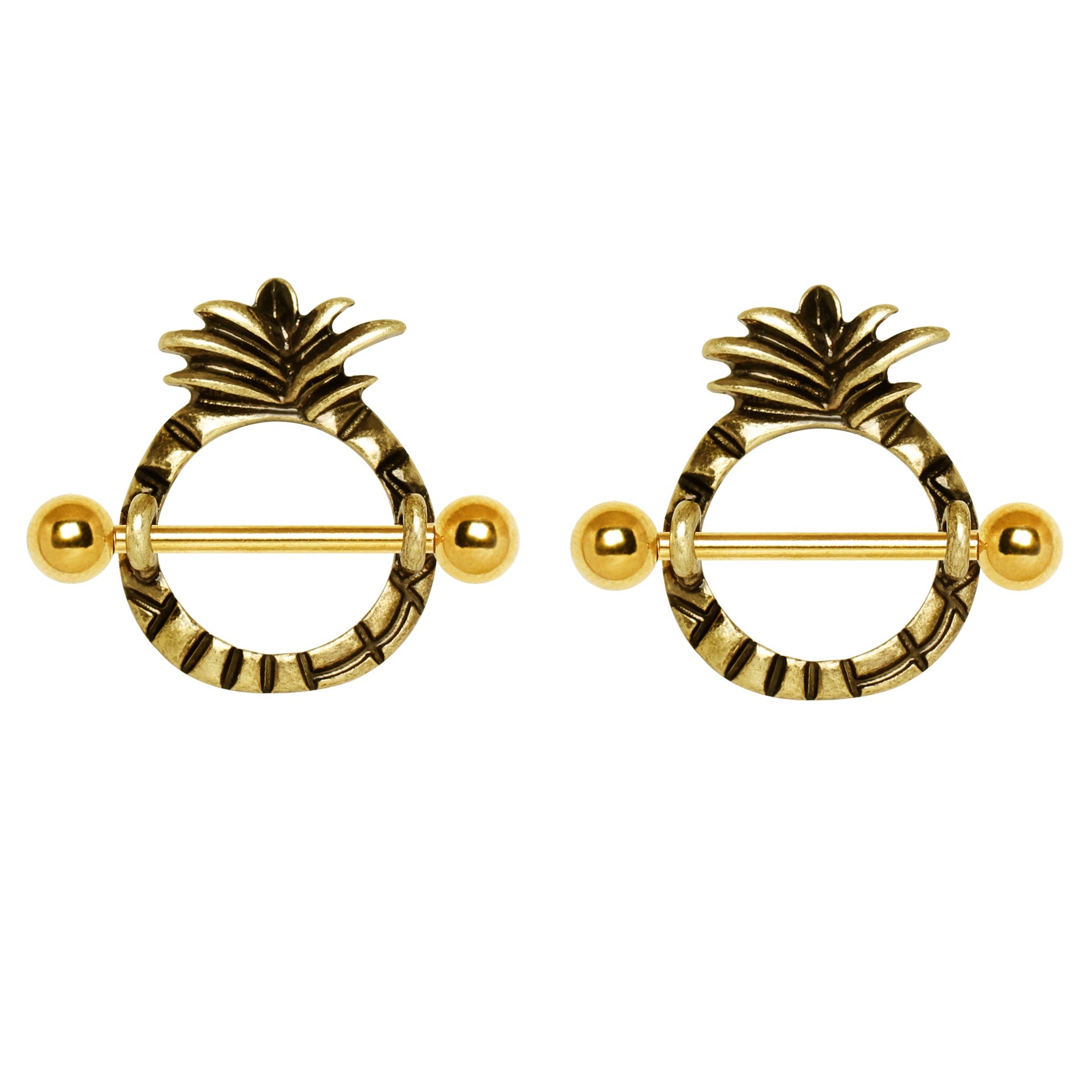 Gold Plated Pineapple Nipple Shields - Stainless Steel - Pair