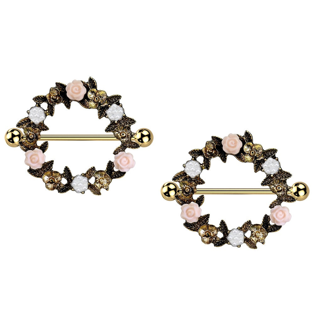 Floral Wreath Nipple Shields - Stainless Steel - Pair
