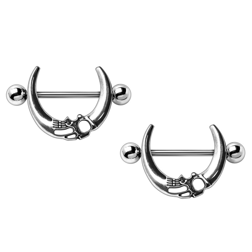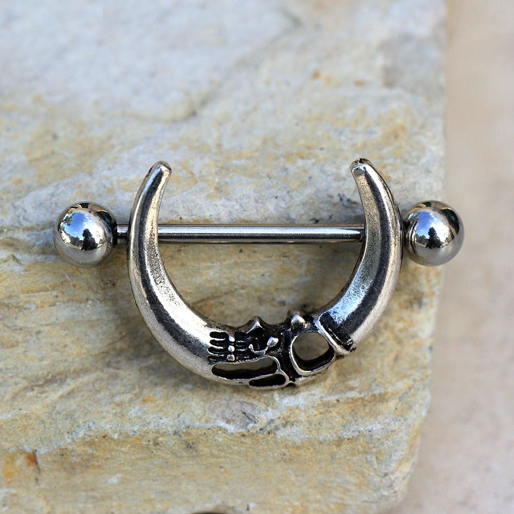 Gothic Skull Crescent Moon Nipple Shields - Stainless Steel - Pair
