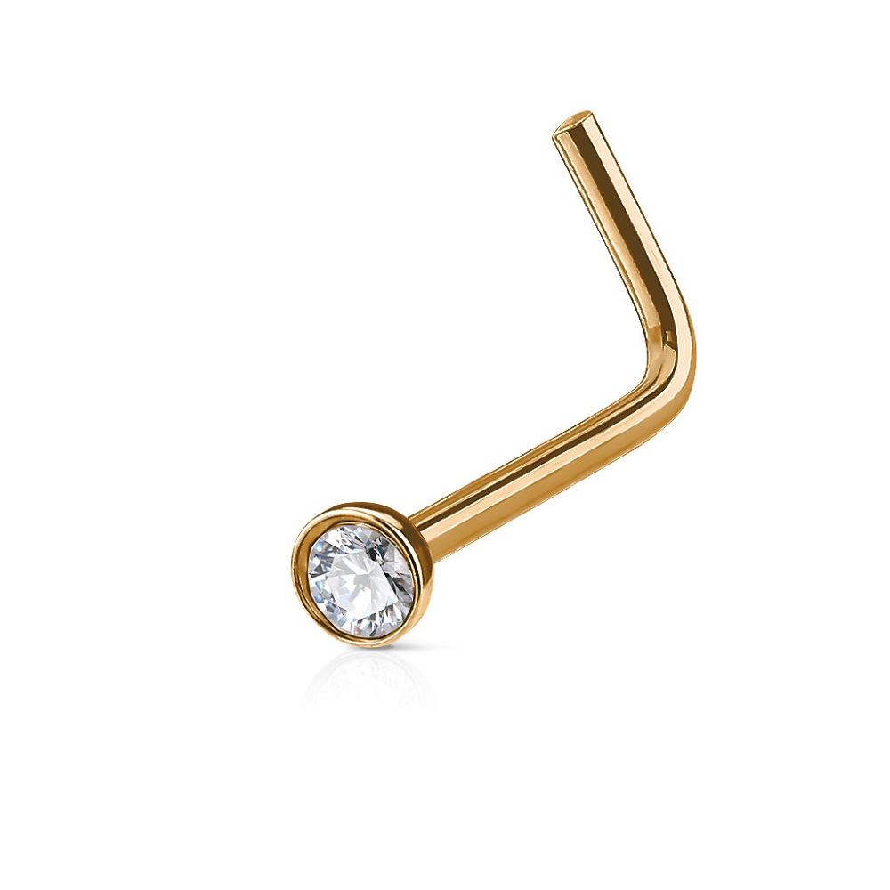 CZ Crystal Top L Bend Nose Stud Ring - Stainless Steel