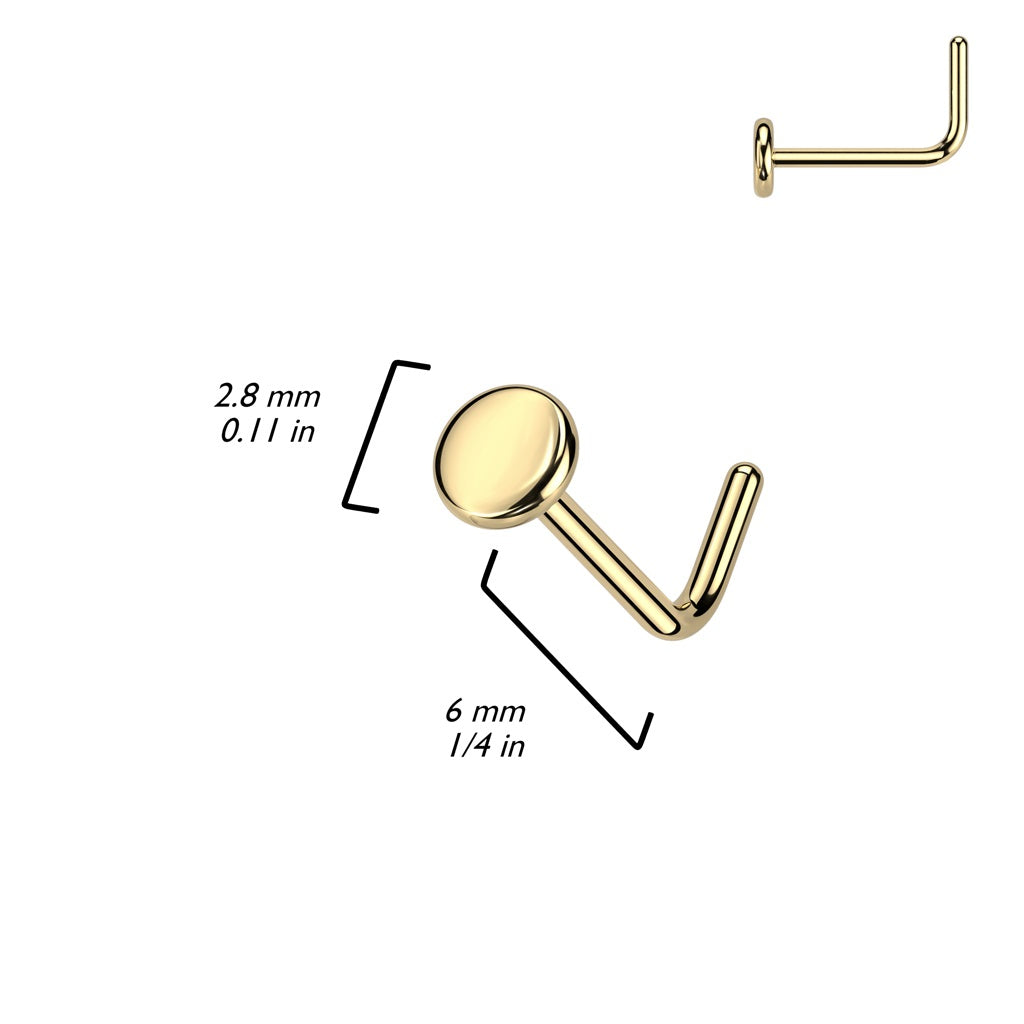 Flat Disc Top L-Bend Nose Stud - F136 Implant Grade Titanium
