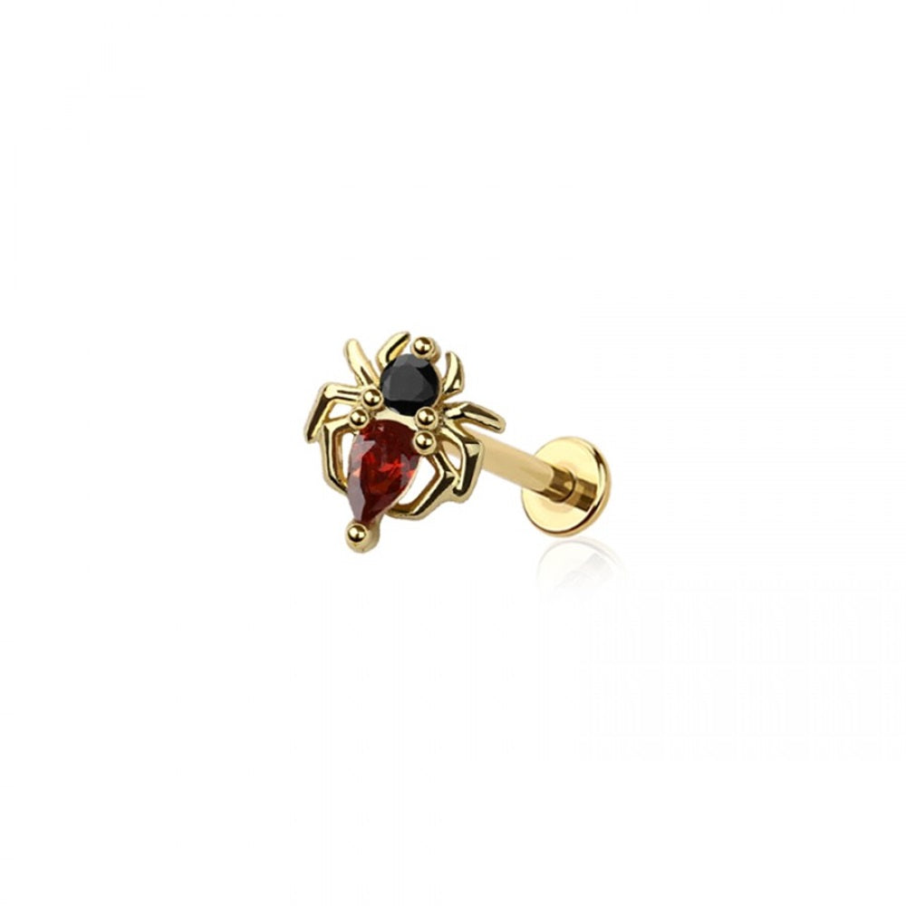 Threadless Push-In CZ Crystal Red Belly Spider Top Flat Back Stud - 316L Stainless Steel
