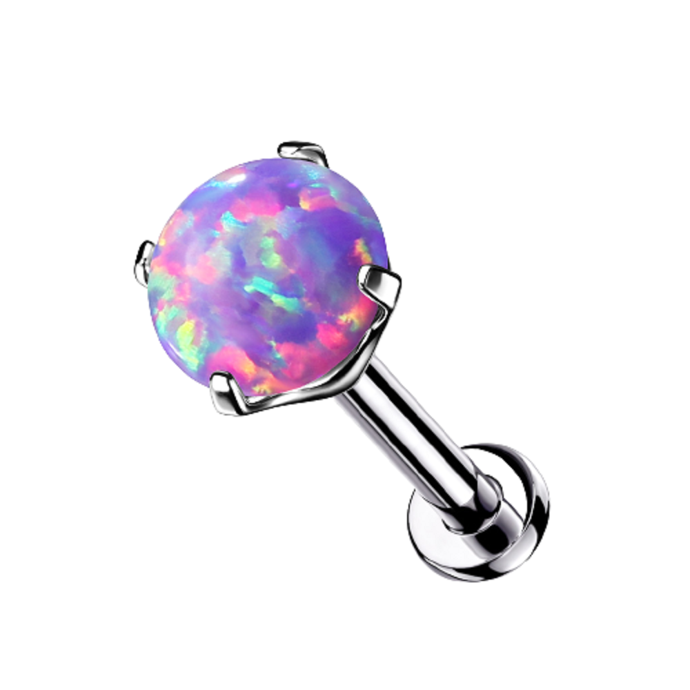 Threadless Push-in Prong Set Synthetic Opal Barbell Stud - G23 Implant Grade Titanium