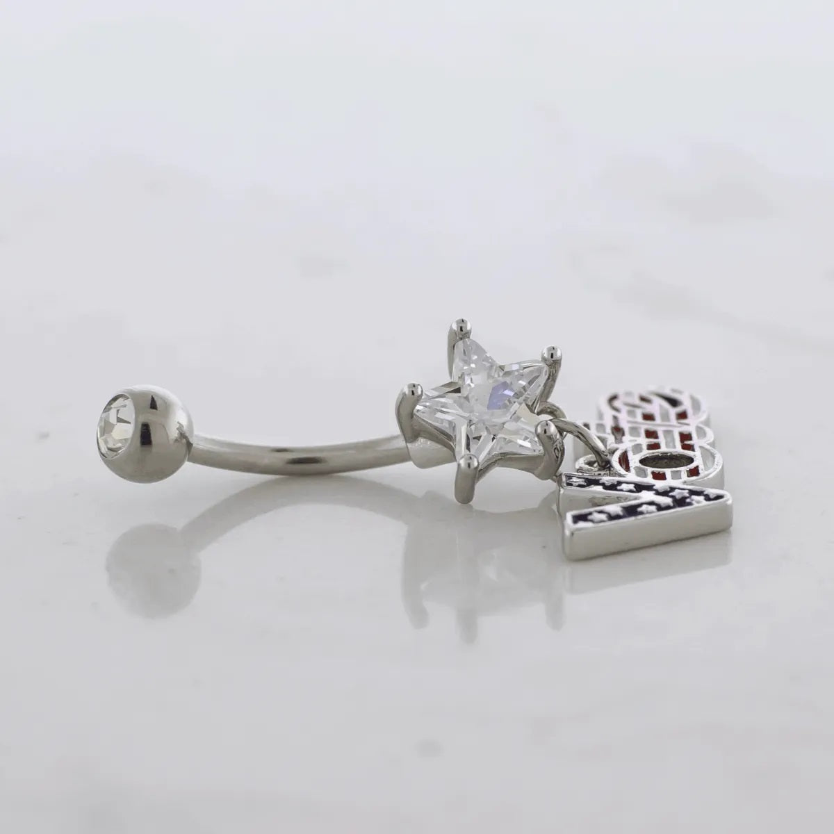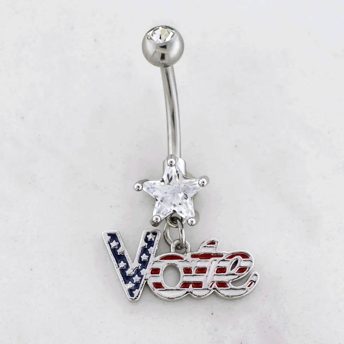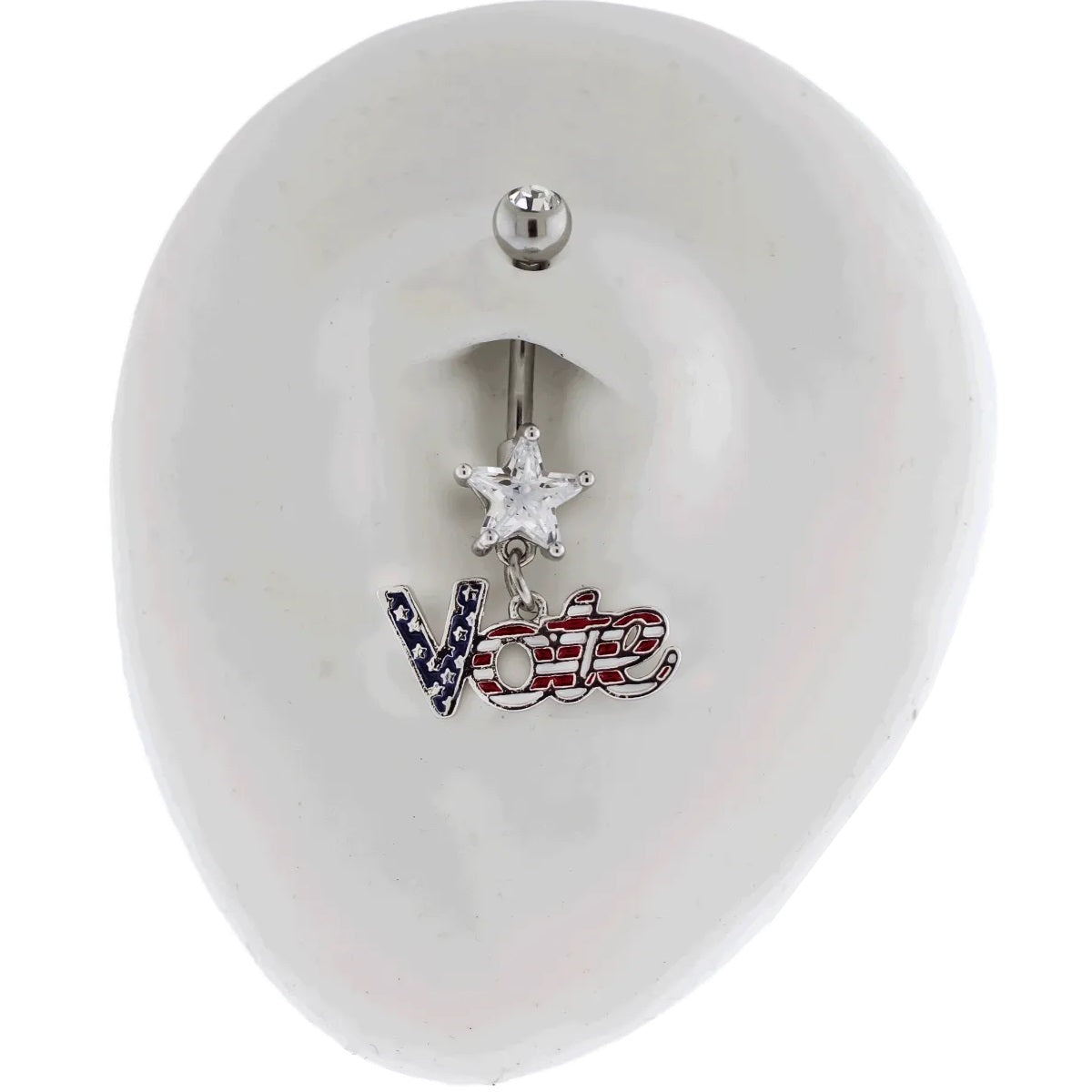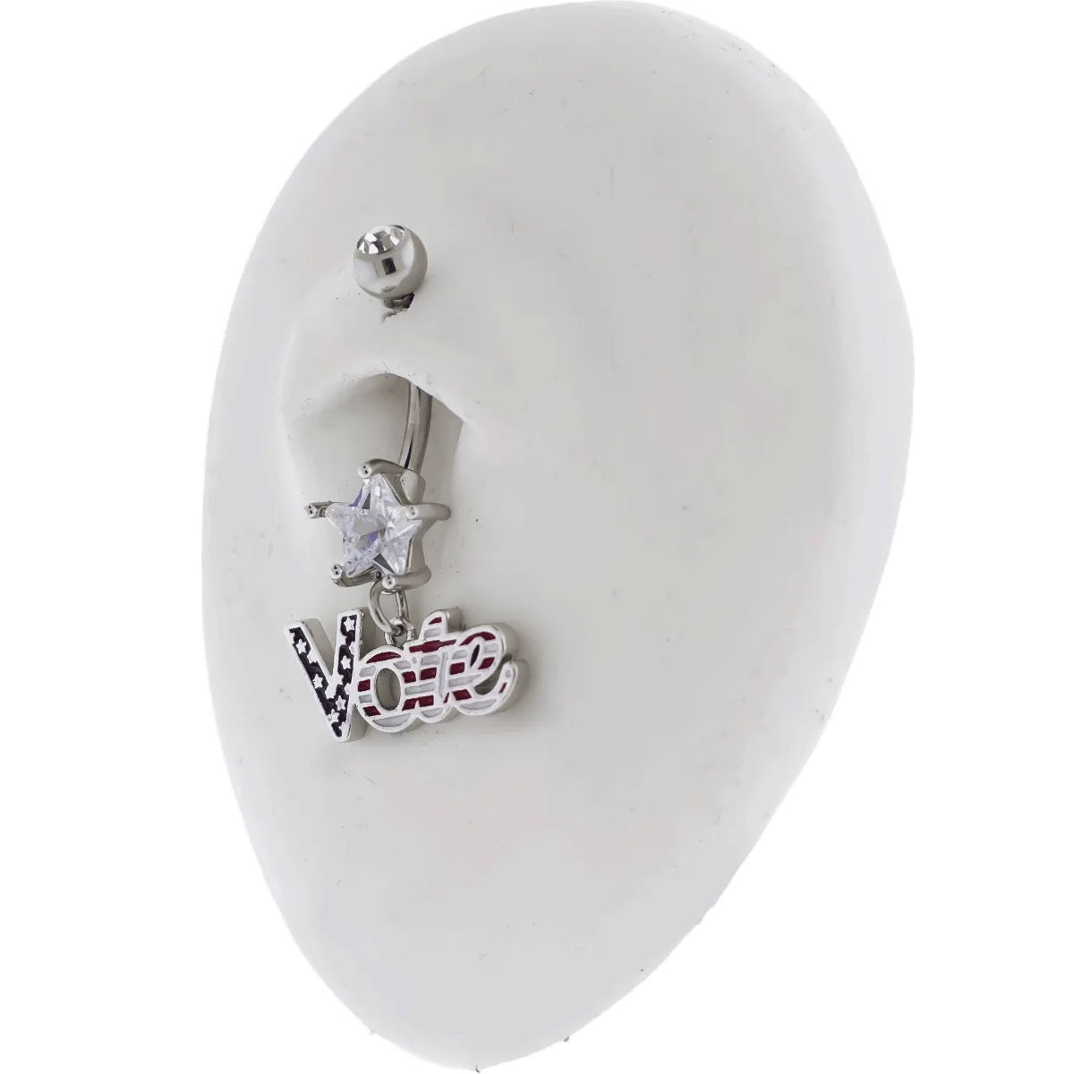Vote Dangling Belly Button Ring - 316L Stainless Steel