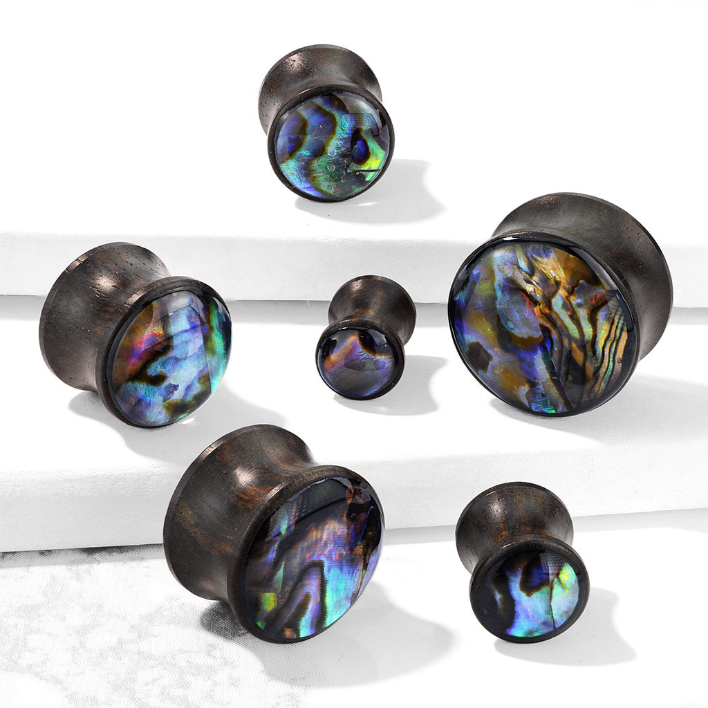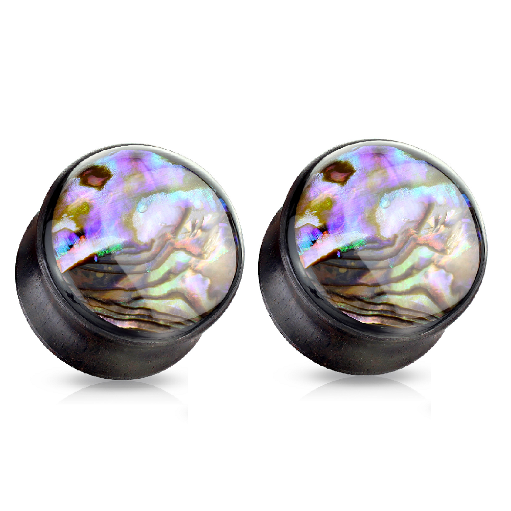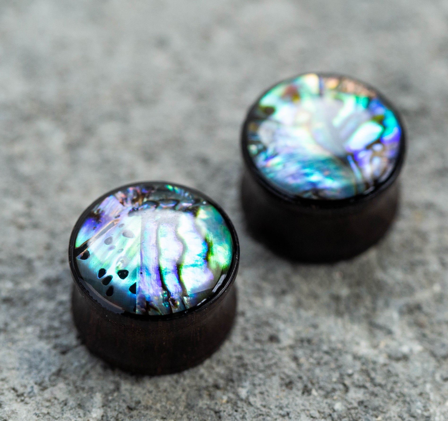 Abalone Shell Inlaid Front Facing Natural Wood Saddle Plugs