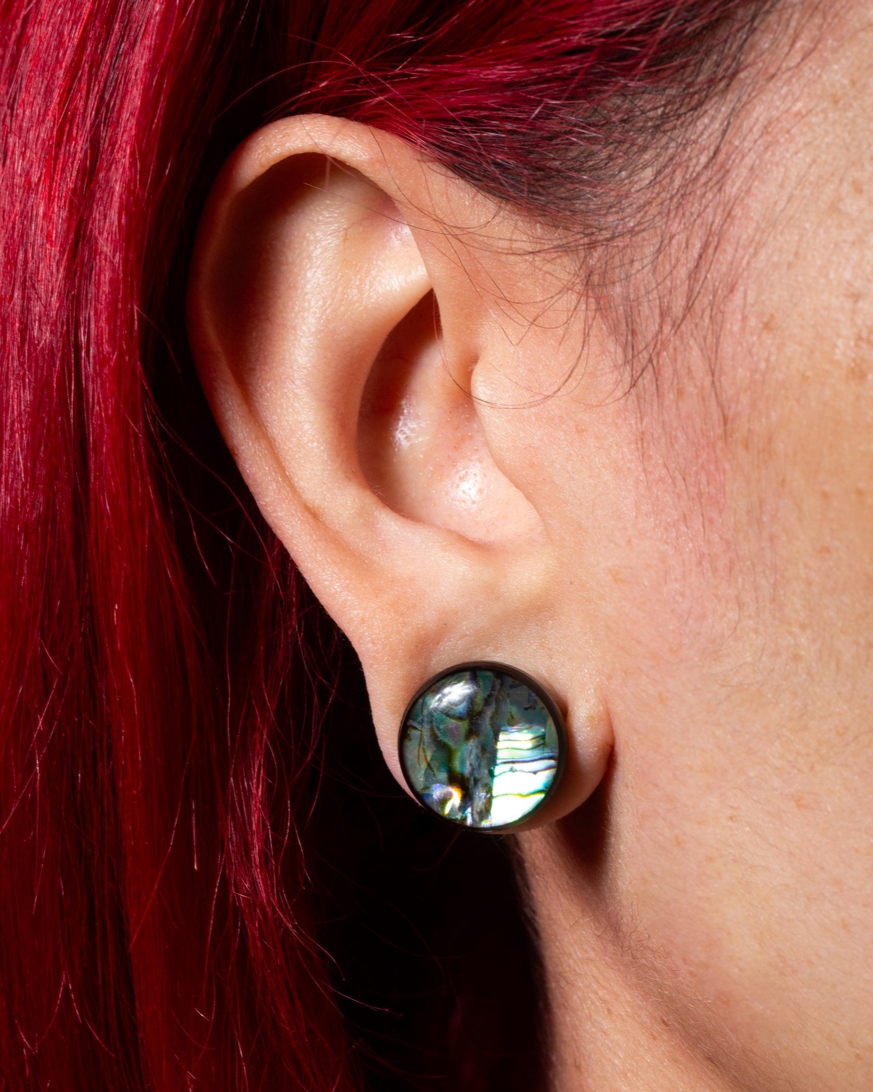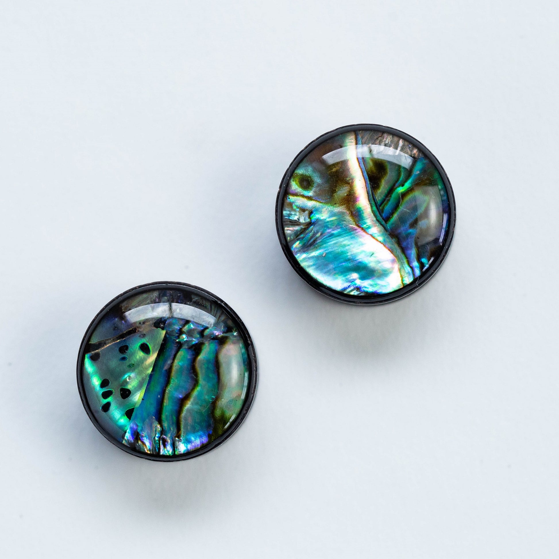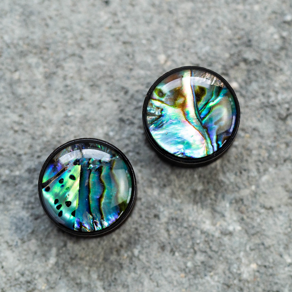 Abalone Shell Inlaid Front Facing Natural Wood Saddle Plugs