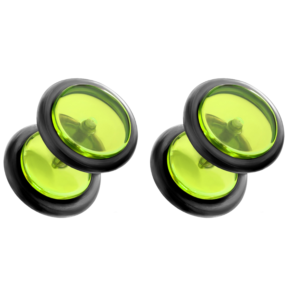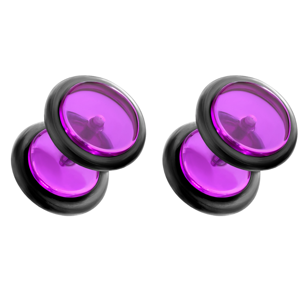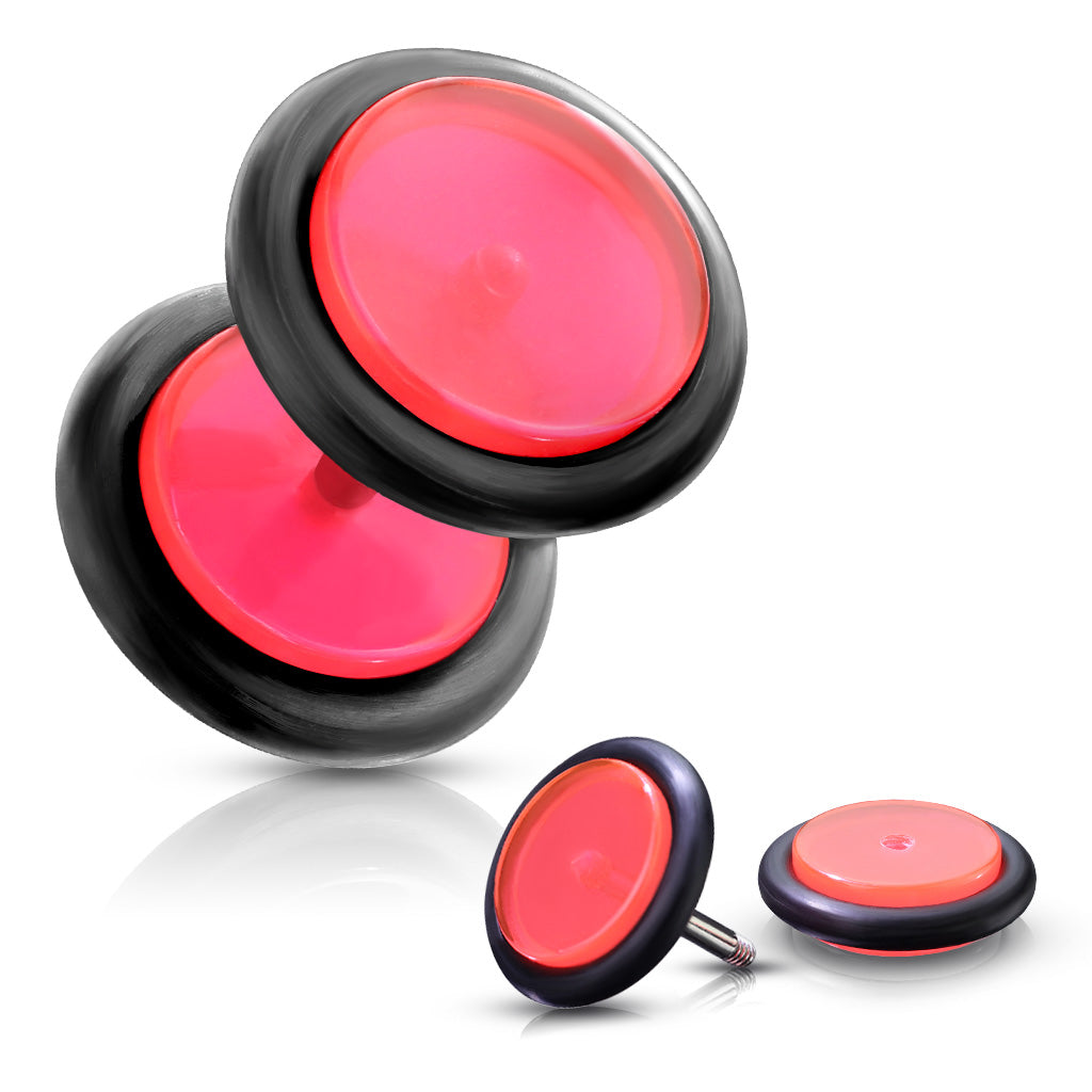 Acrylic Fake 0GA Plugs with Black O-Rings - Pair