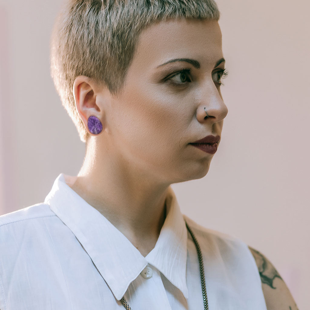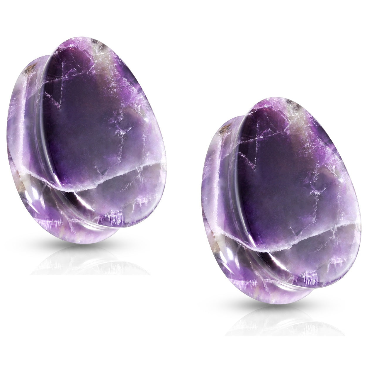 Amethyst Stone Double Flared Tear Drop Saddle Plugs