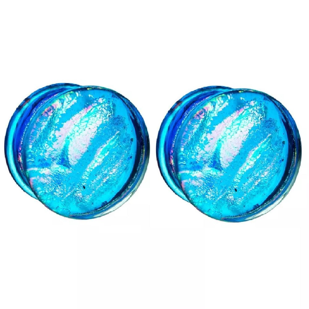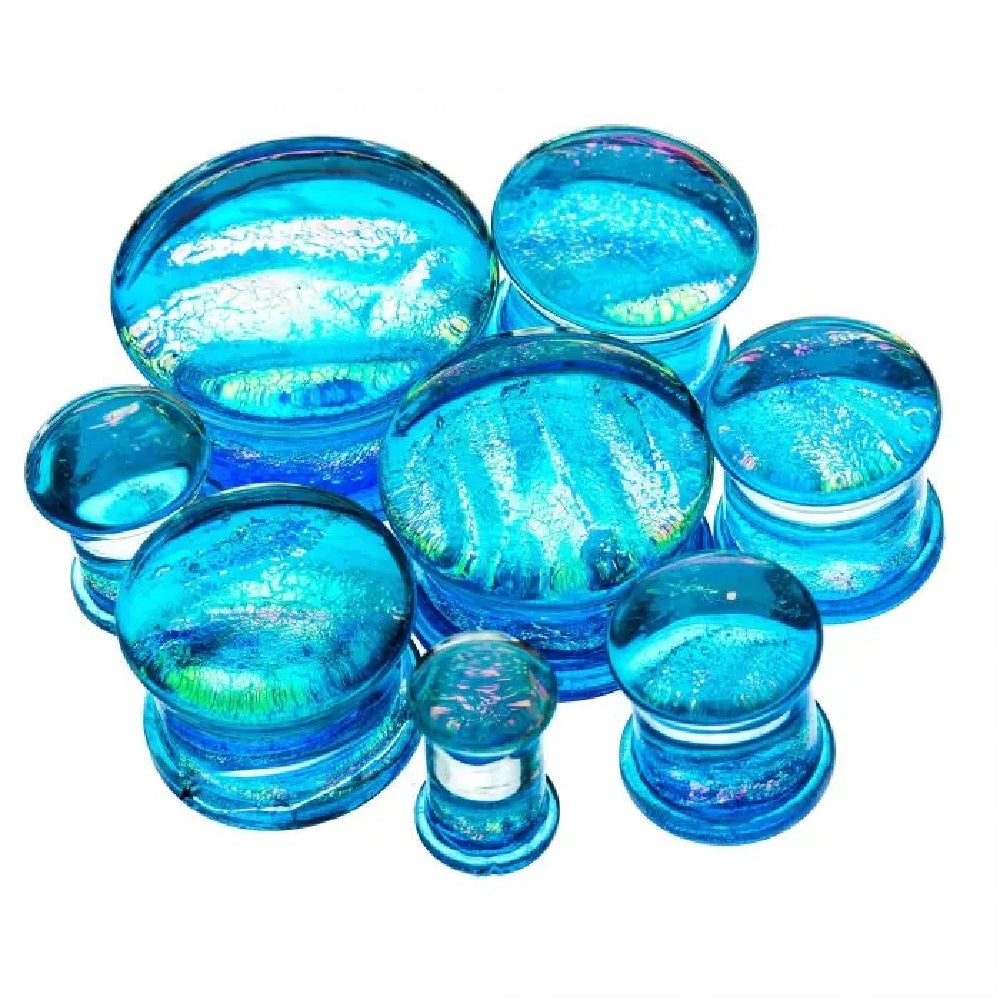 Aqua Blue Sparkling Swirl Glass Plugs - Pair