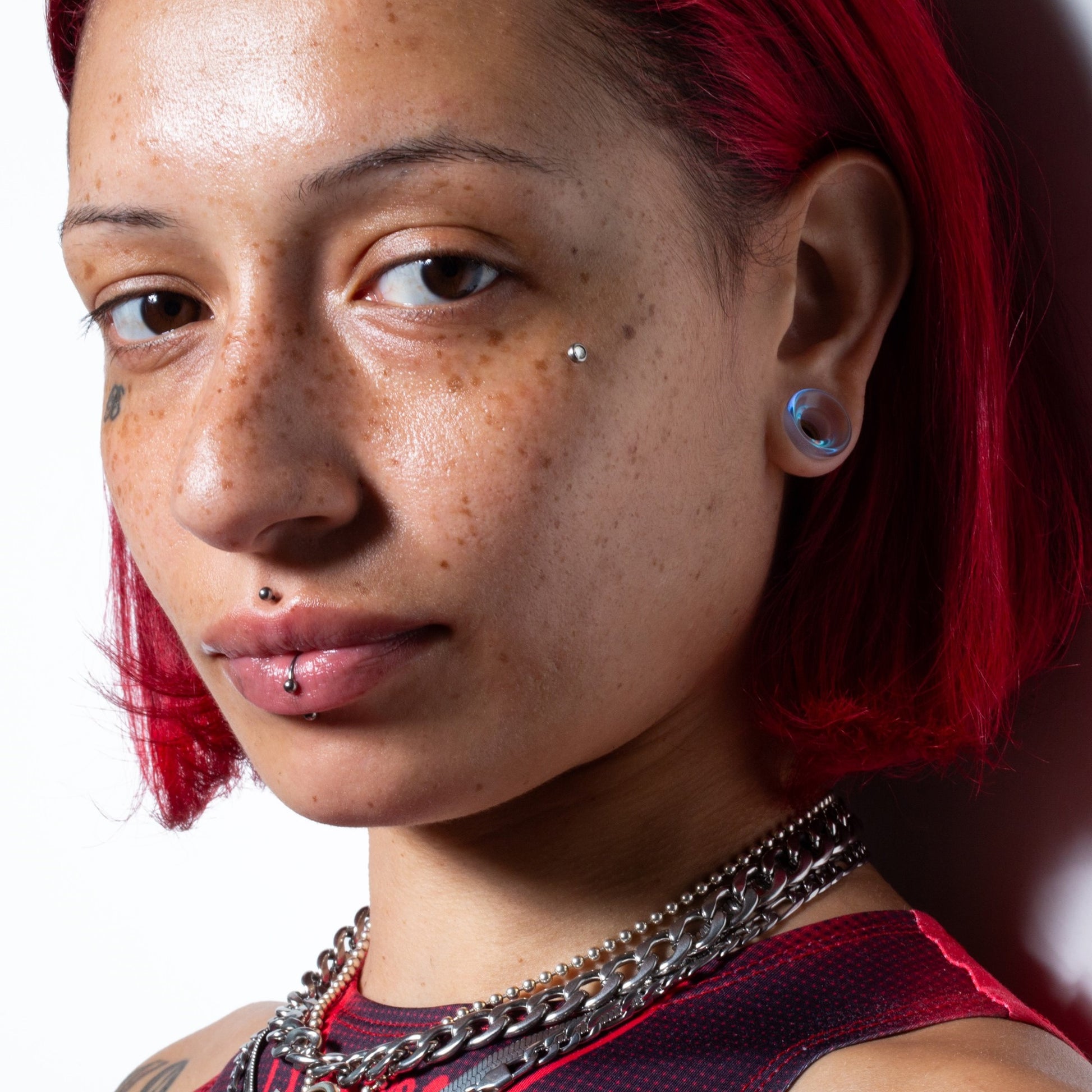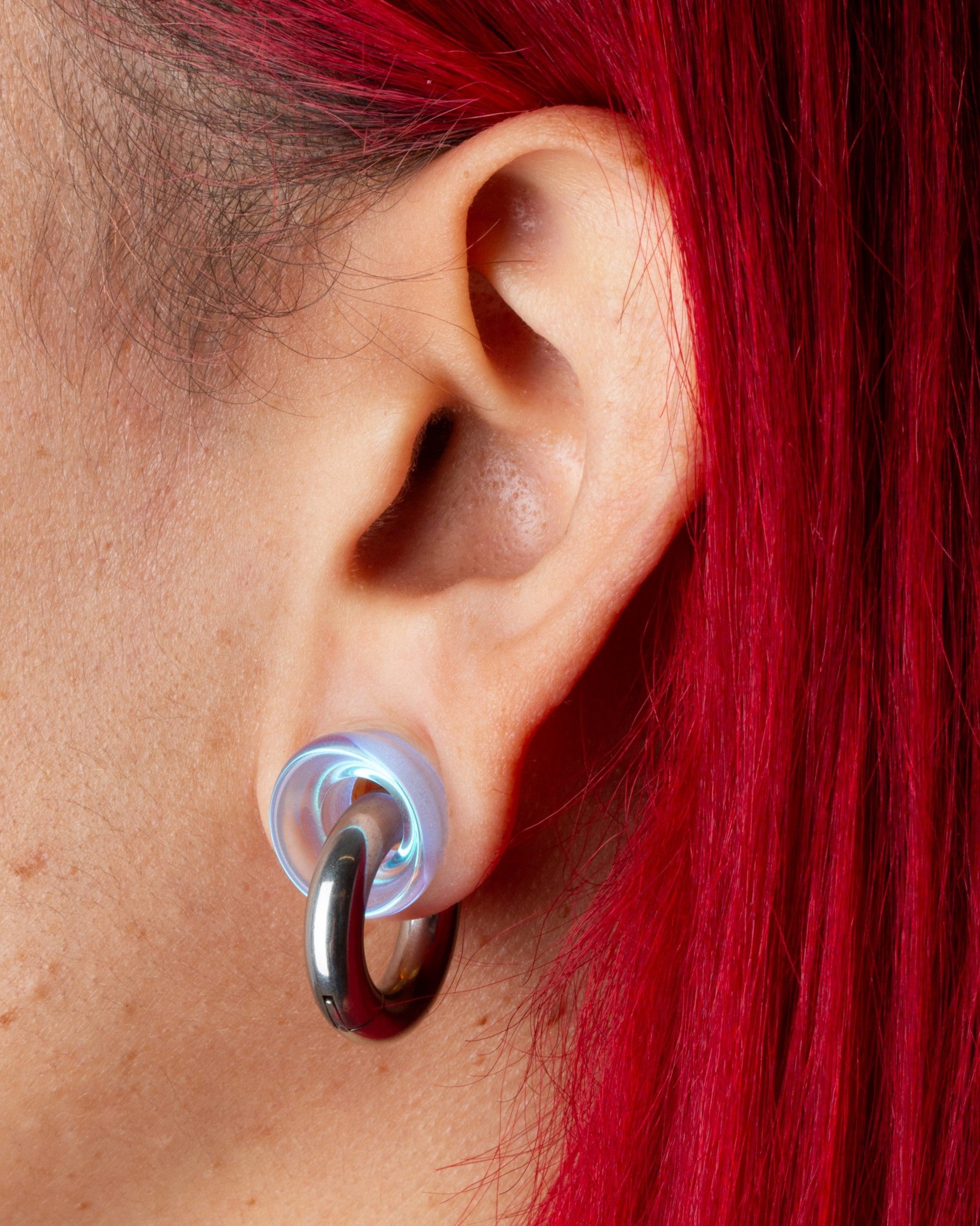 Aurora Borealis Glass Double Flared Tunnels - Pair