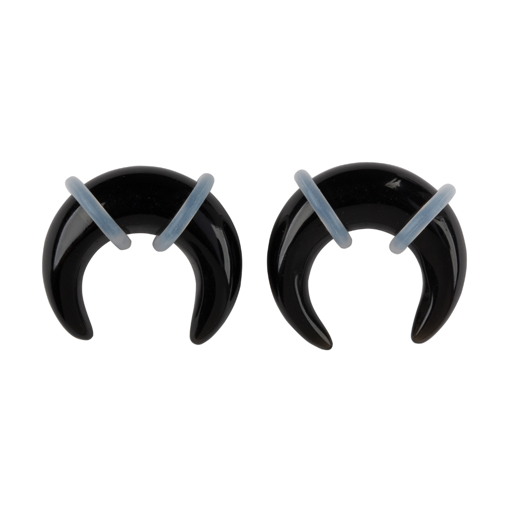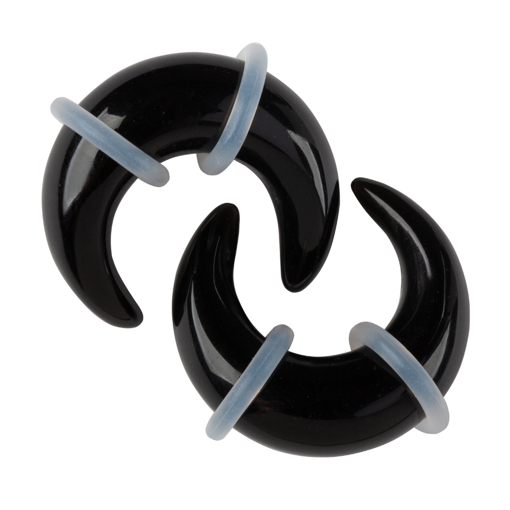 Black Obsidian Stone Pincher Taper Plugs with O Rings - Pair