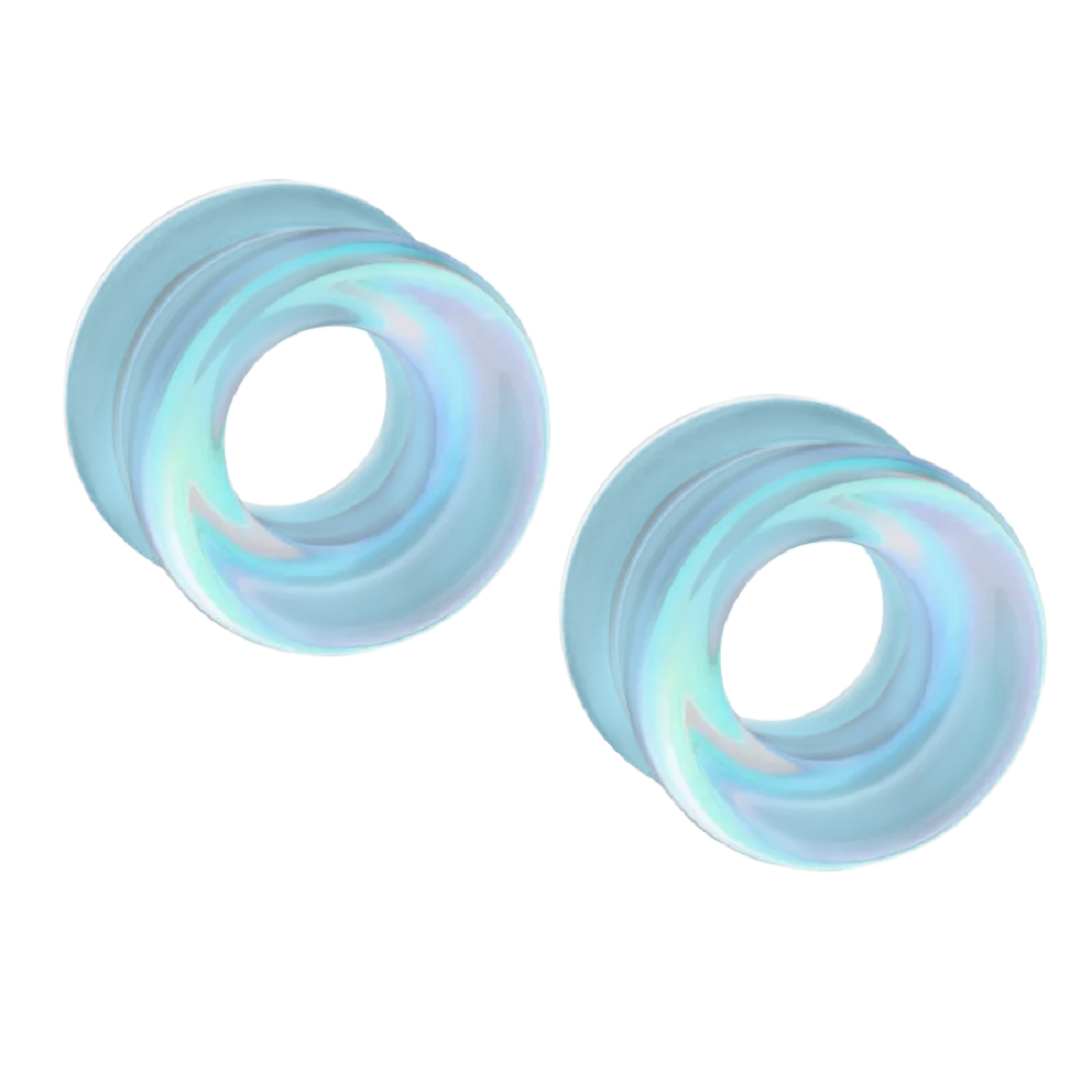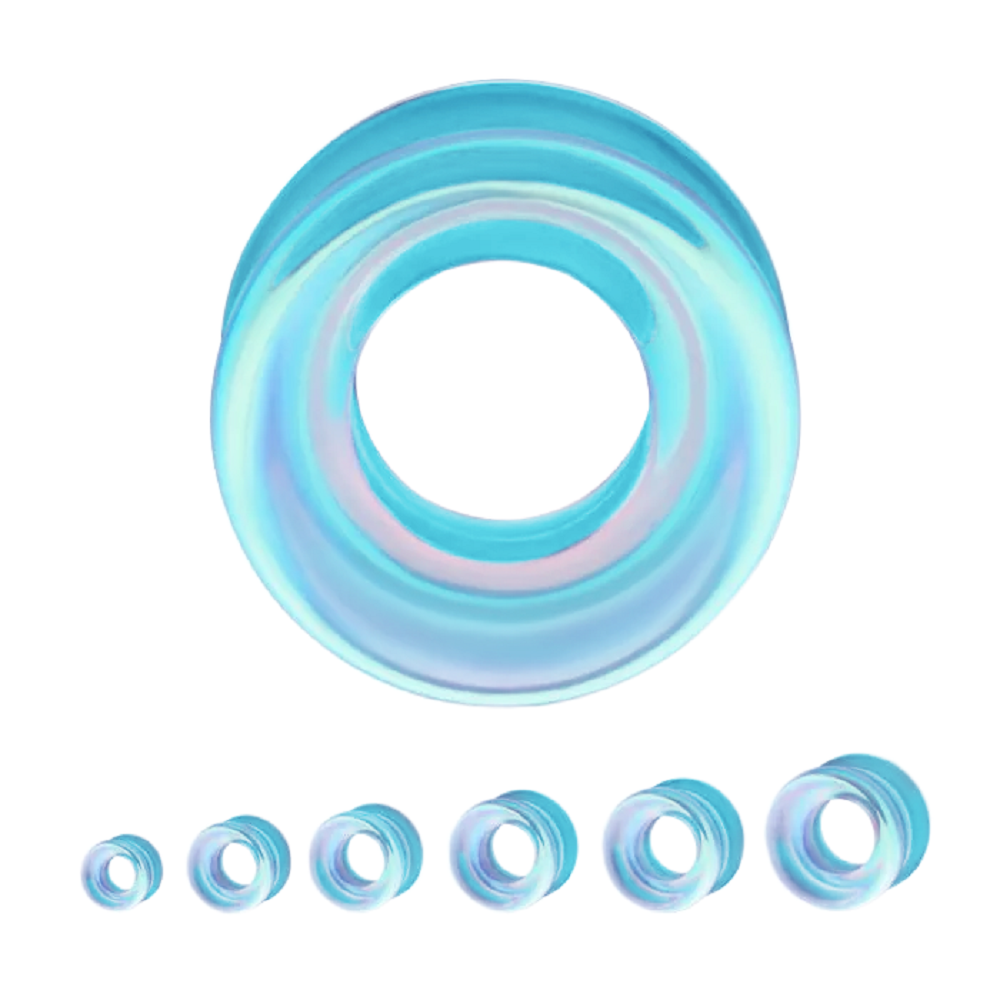 Clear Iridescent Hollow Glass Double Flared Tunnels - Pair