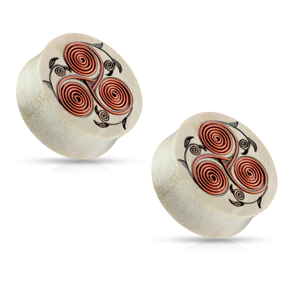Copper Wire Tribal Floral Carved Organic Crocodile Wood Saddle Plugs Ear Plugs Gauges