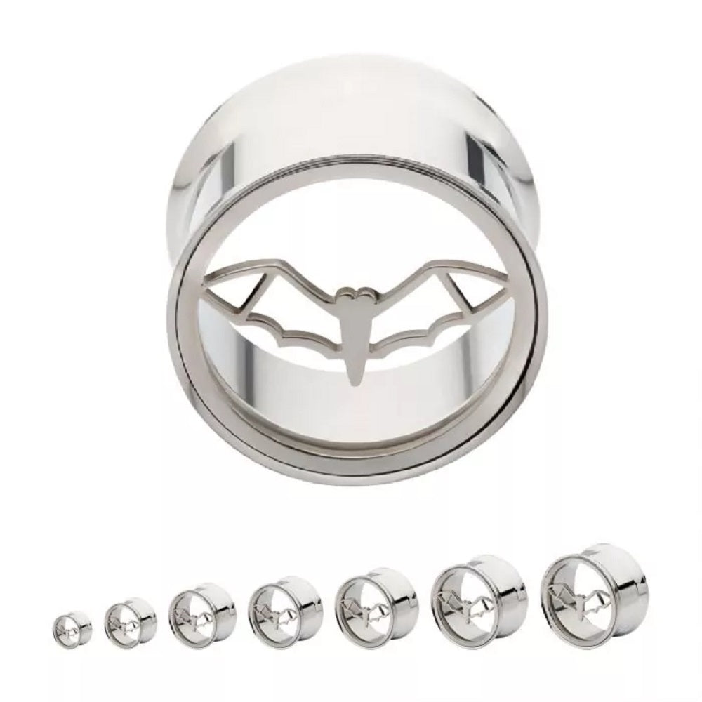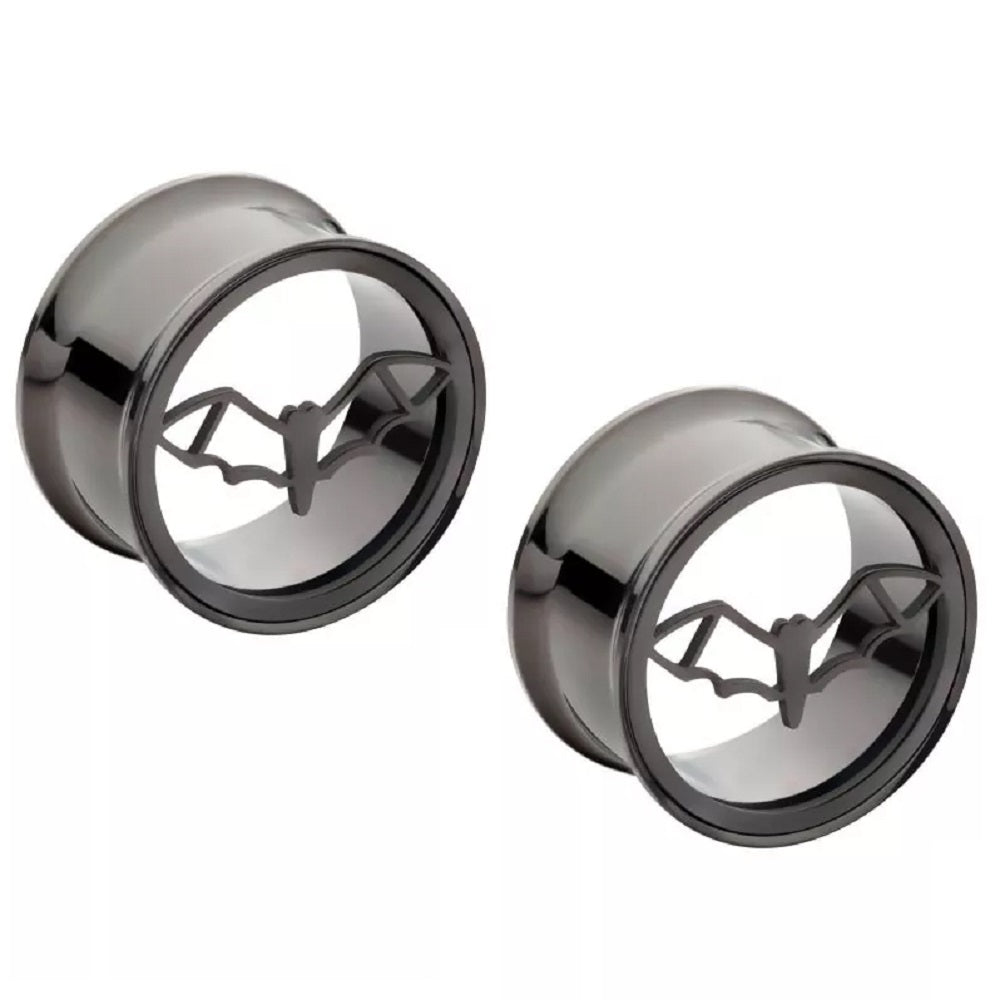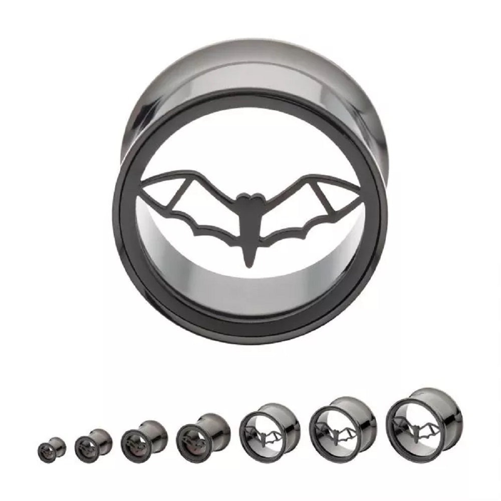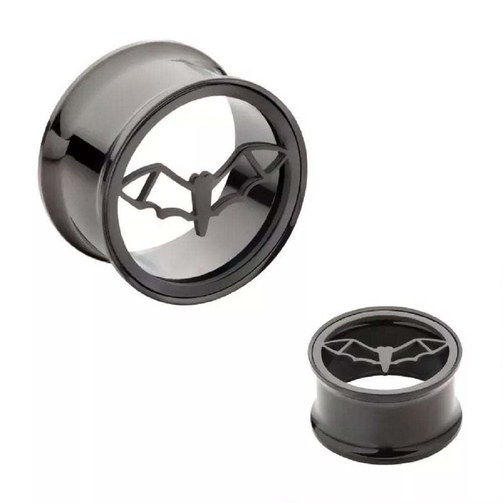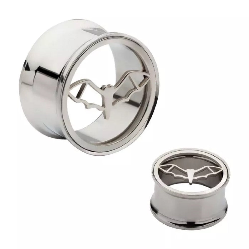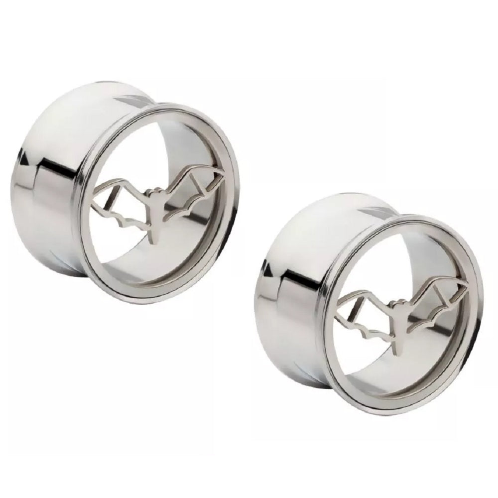 Cut Out Bat with Open Wings Double Flared Plugs - 316L Stainless Steel - Pair