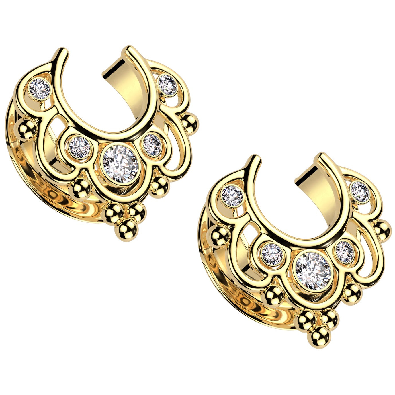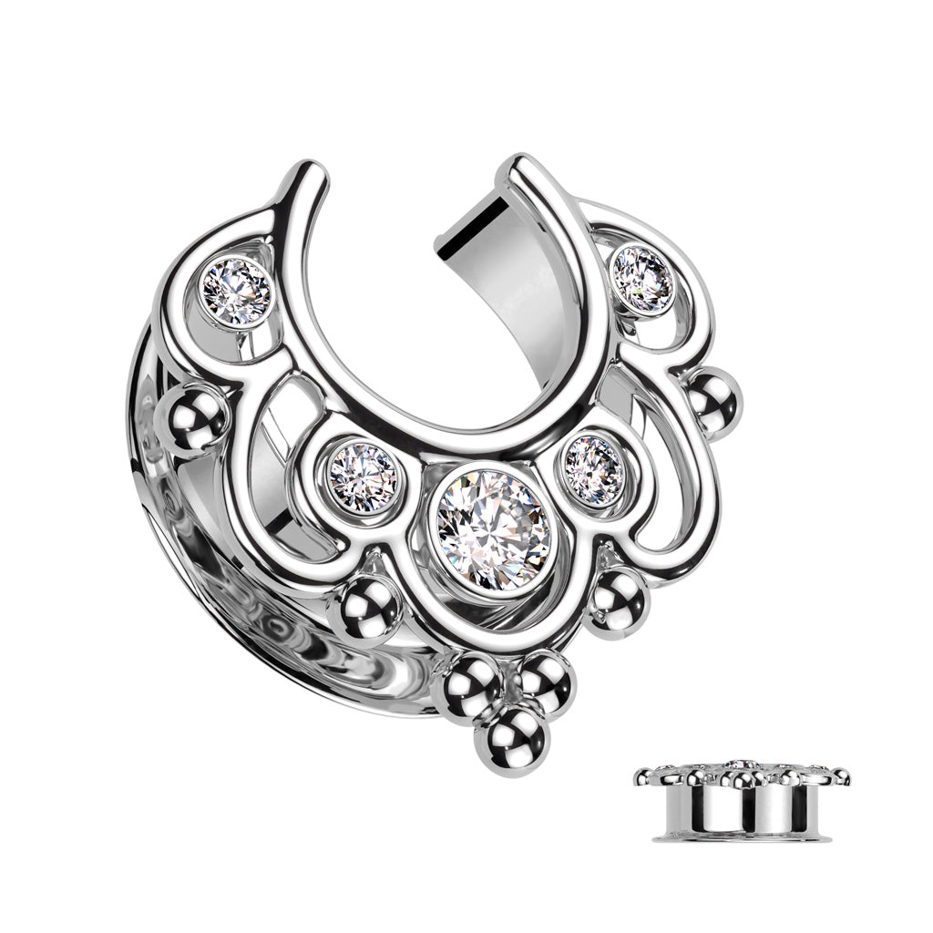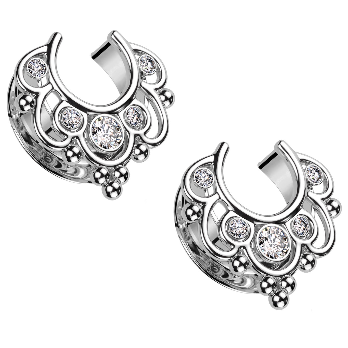 CZ Crystal Floral Filigree Saddle Tunnels - Pair - 316L Stainless Steel