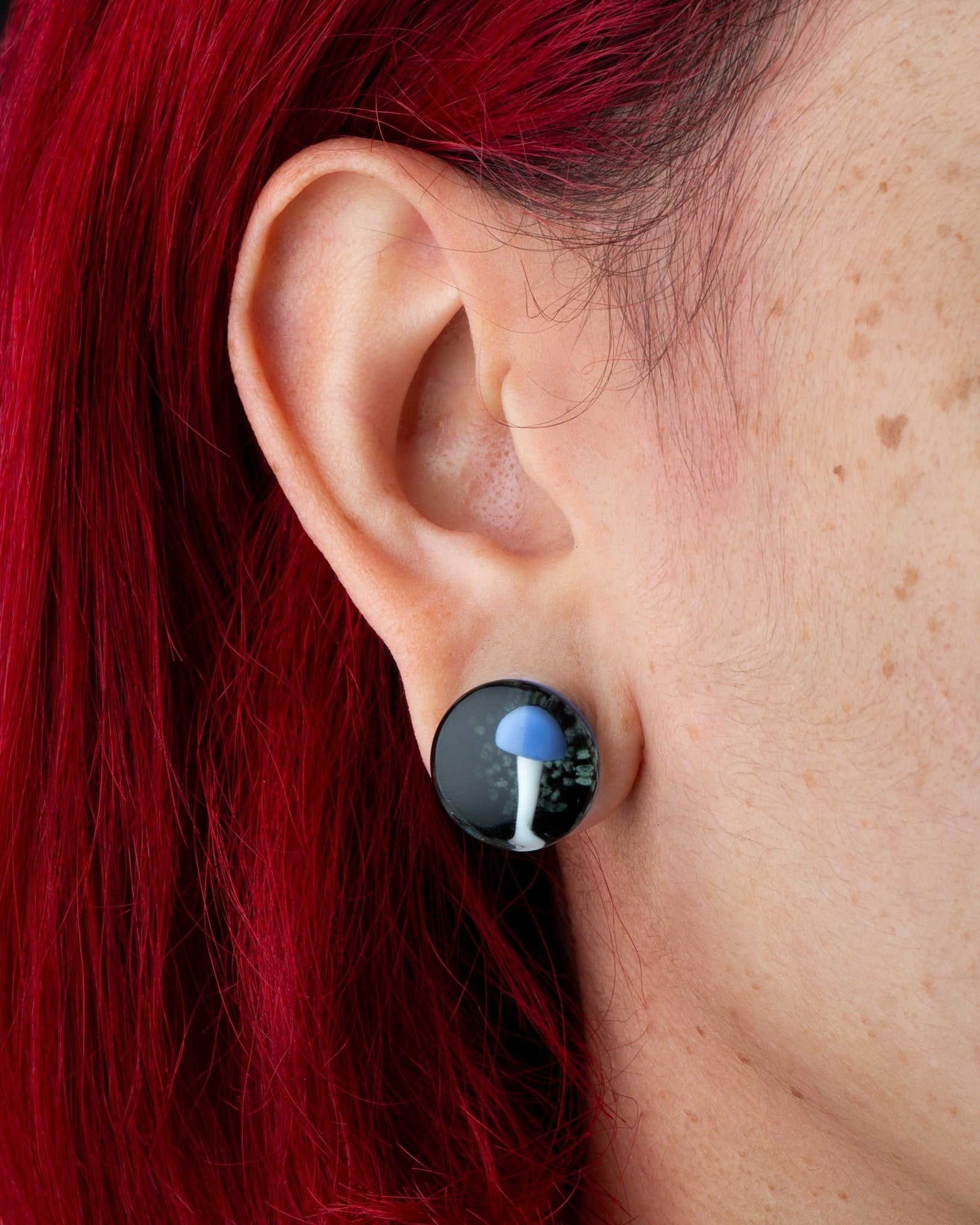 Floating Glowing Mushroom Encased Pyrex Glass Saddle Plugs - Pair