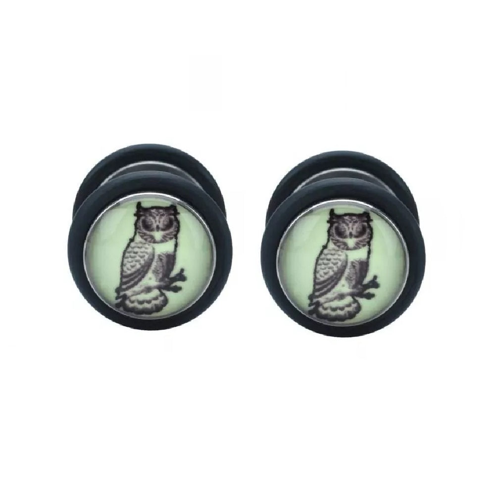 Glow In The Dark Owl Cheater Plugs - Stainless Steel