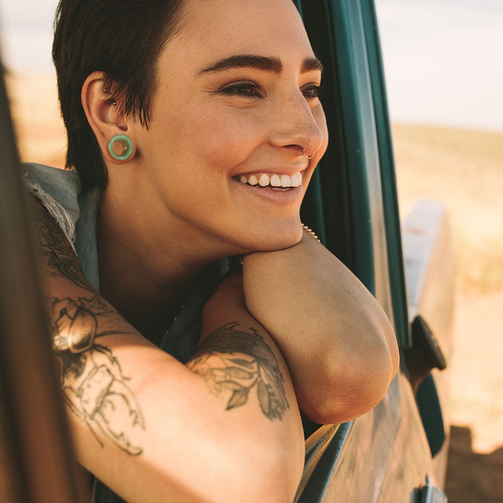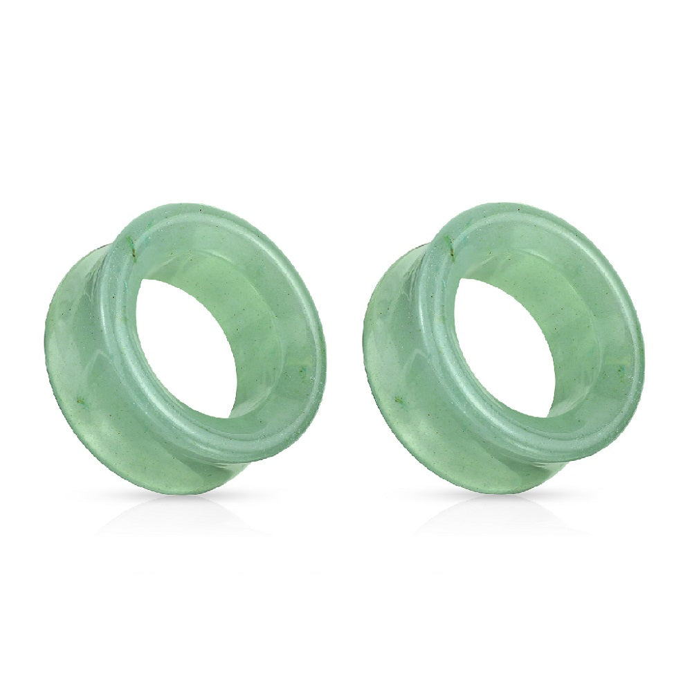 Green Aventurine Stone Double Flared Saddle Tunnels - Pair