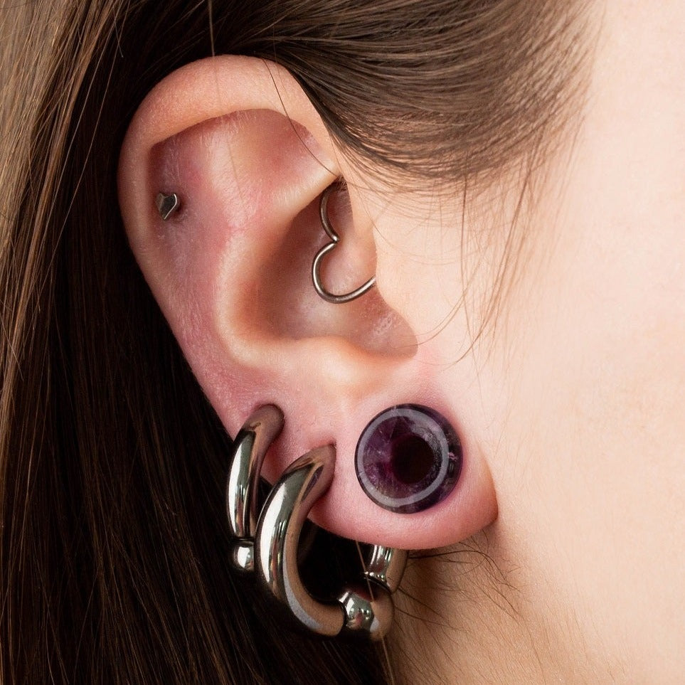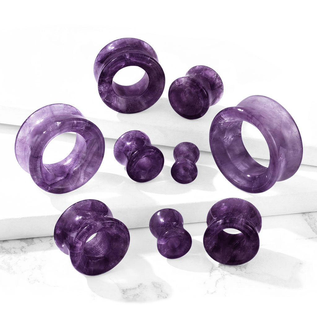 Natural Amethyst Stone Double Flared Saddle Tunnels - Pair