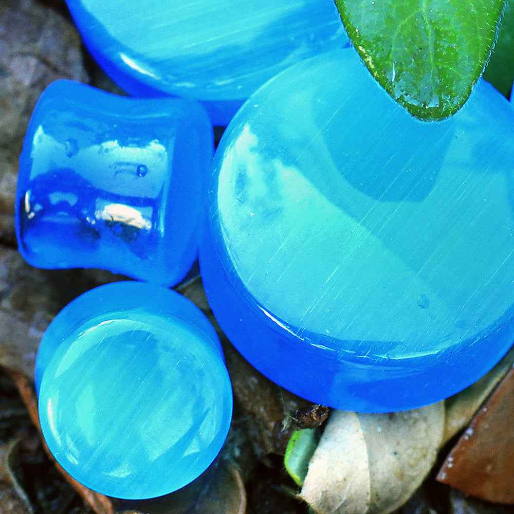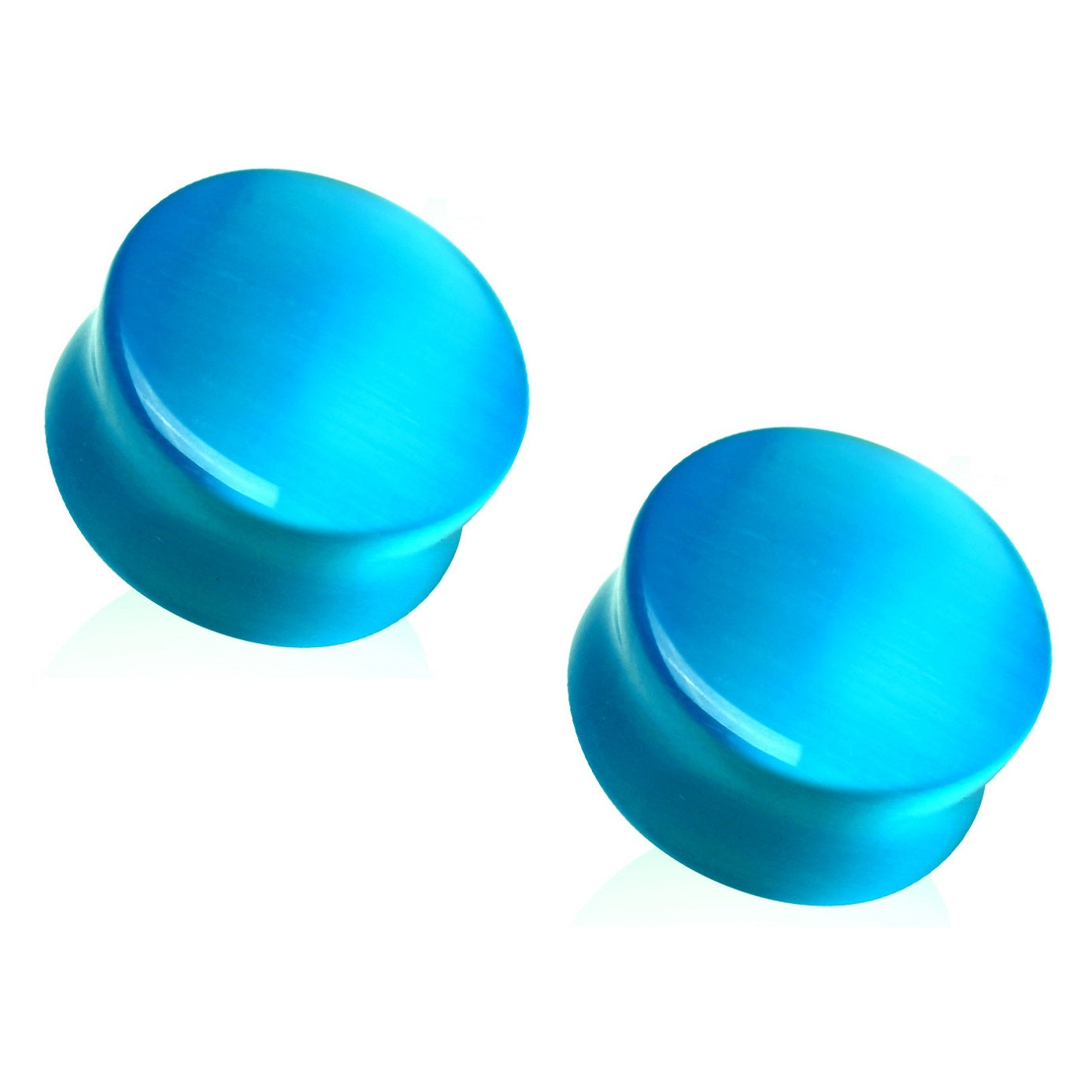 Natural Aqua Blue Cat's Eye Stone Double Flared Saddle Plugs