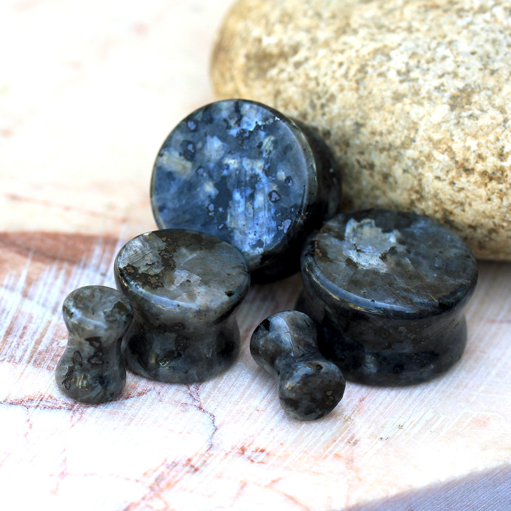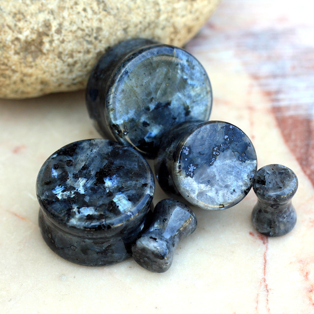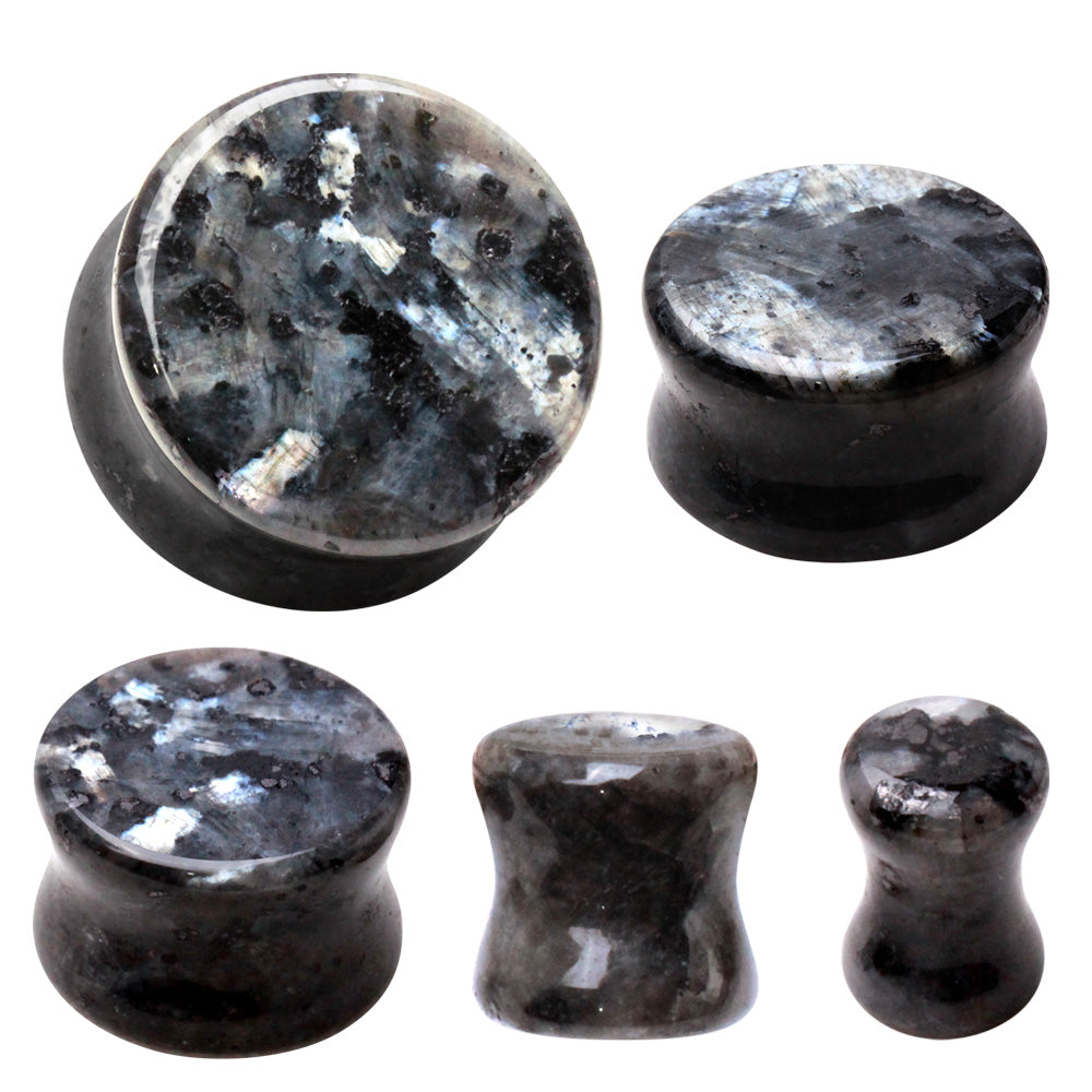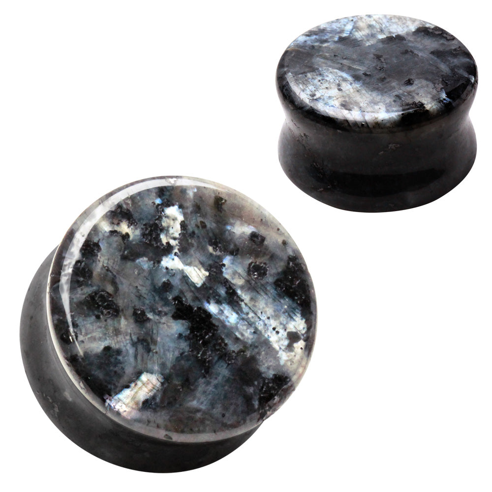 Natural Black Labradorite Stone Double Flared Plugs - Pair