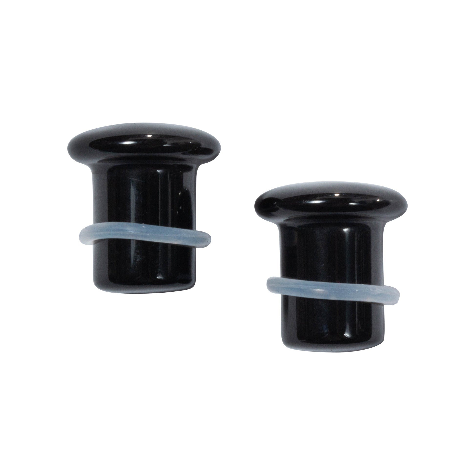 Natural Black Obsidian Single Flare Plugs with Clear O-Rings - Pair