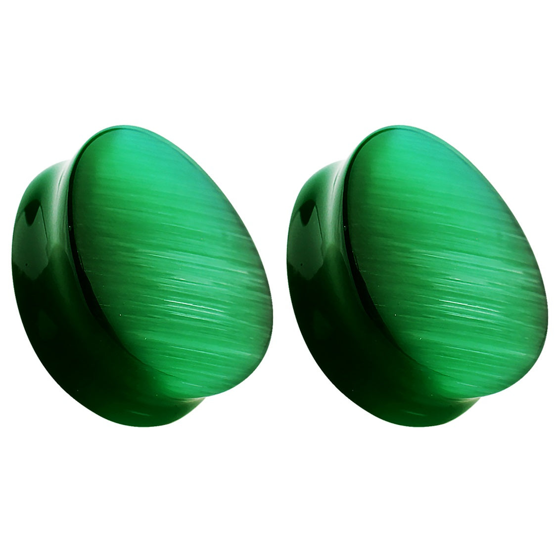 Natural Green Cat's Eye Stone Double Flared Tear Drop Plugs
