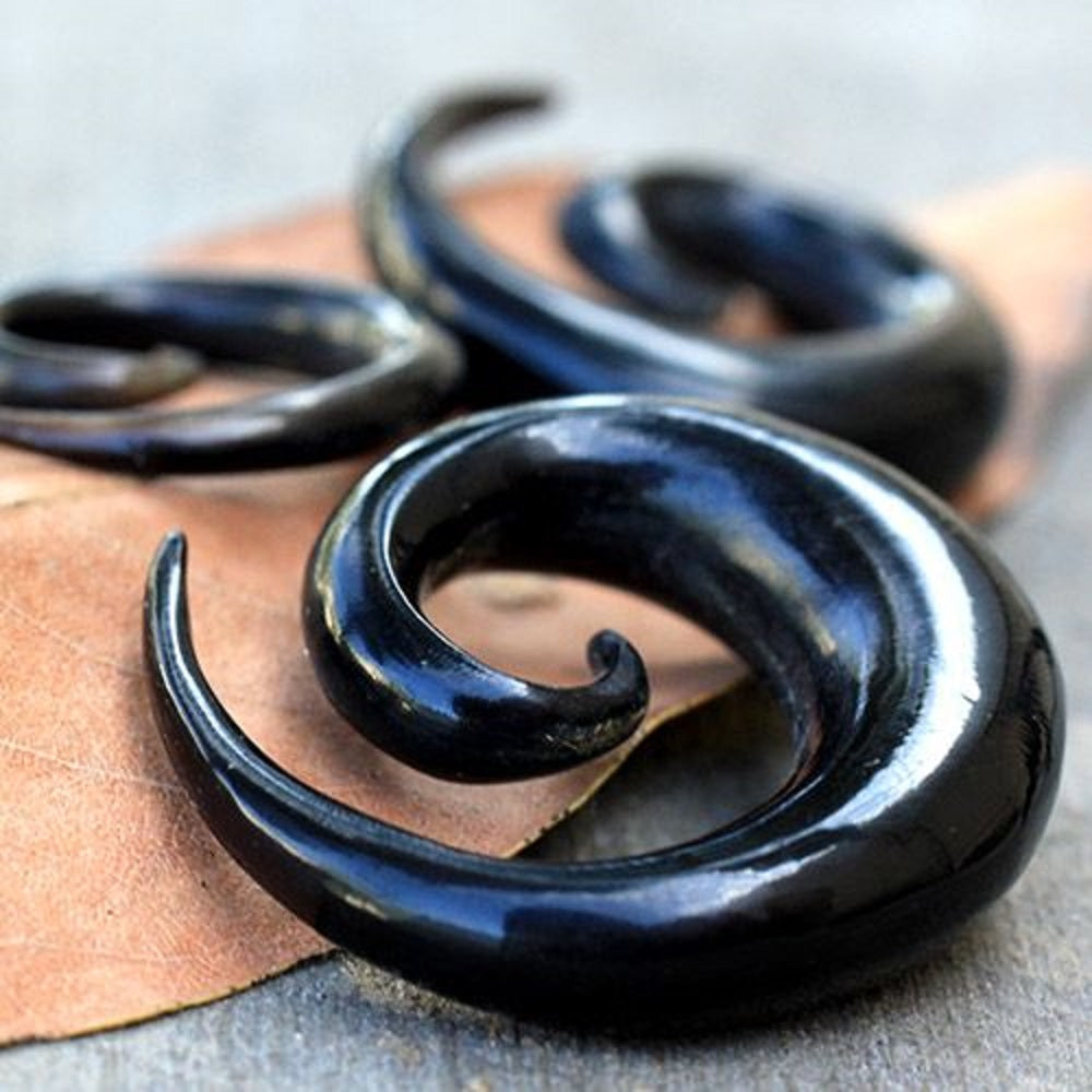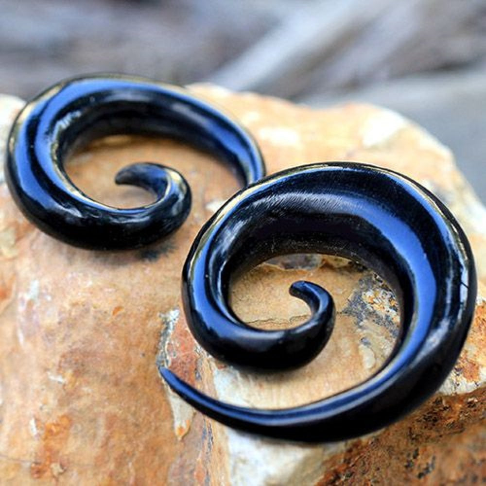 Natural Organic Buffalo Horn Spiral Taper Plugs - Pair