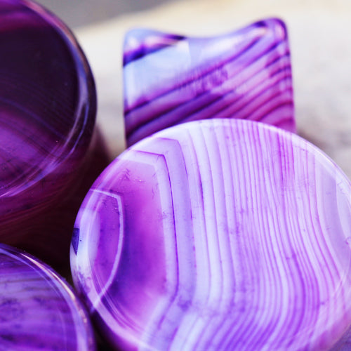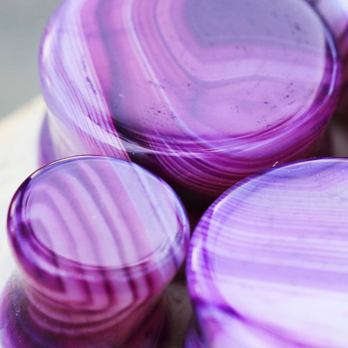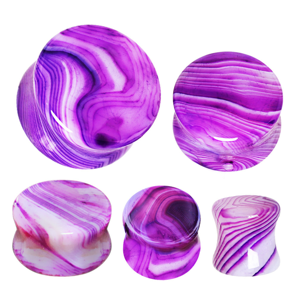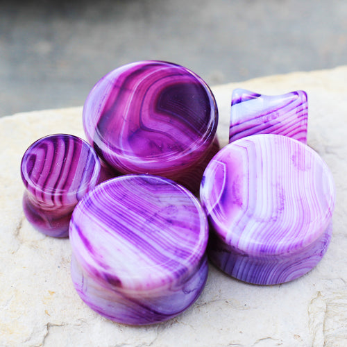 Natural Purple Striped Agate Stone Saddle Plugs - Pair