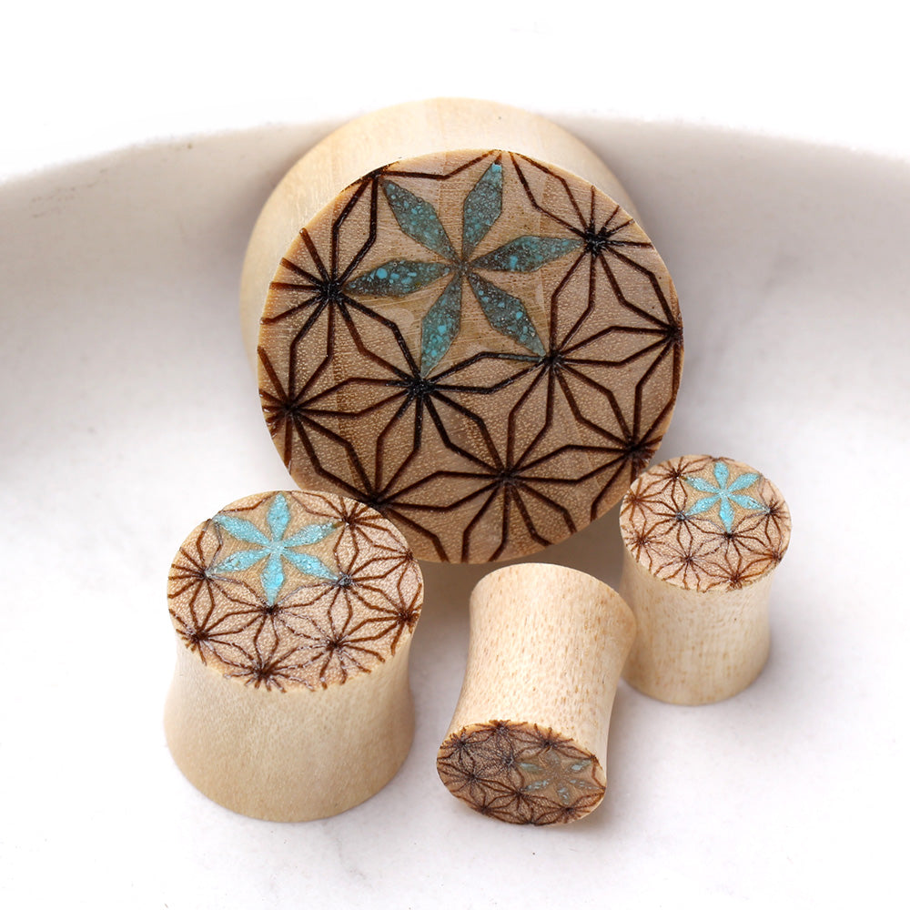 Organic Crocodile Wood Geometric Pattern Saddle Plugs