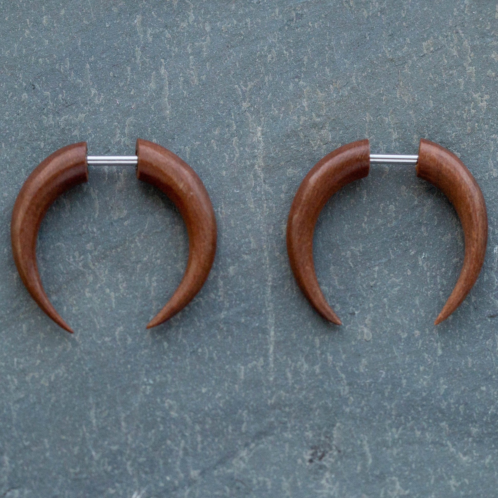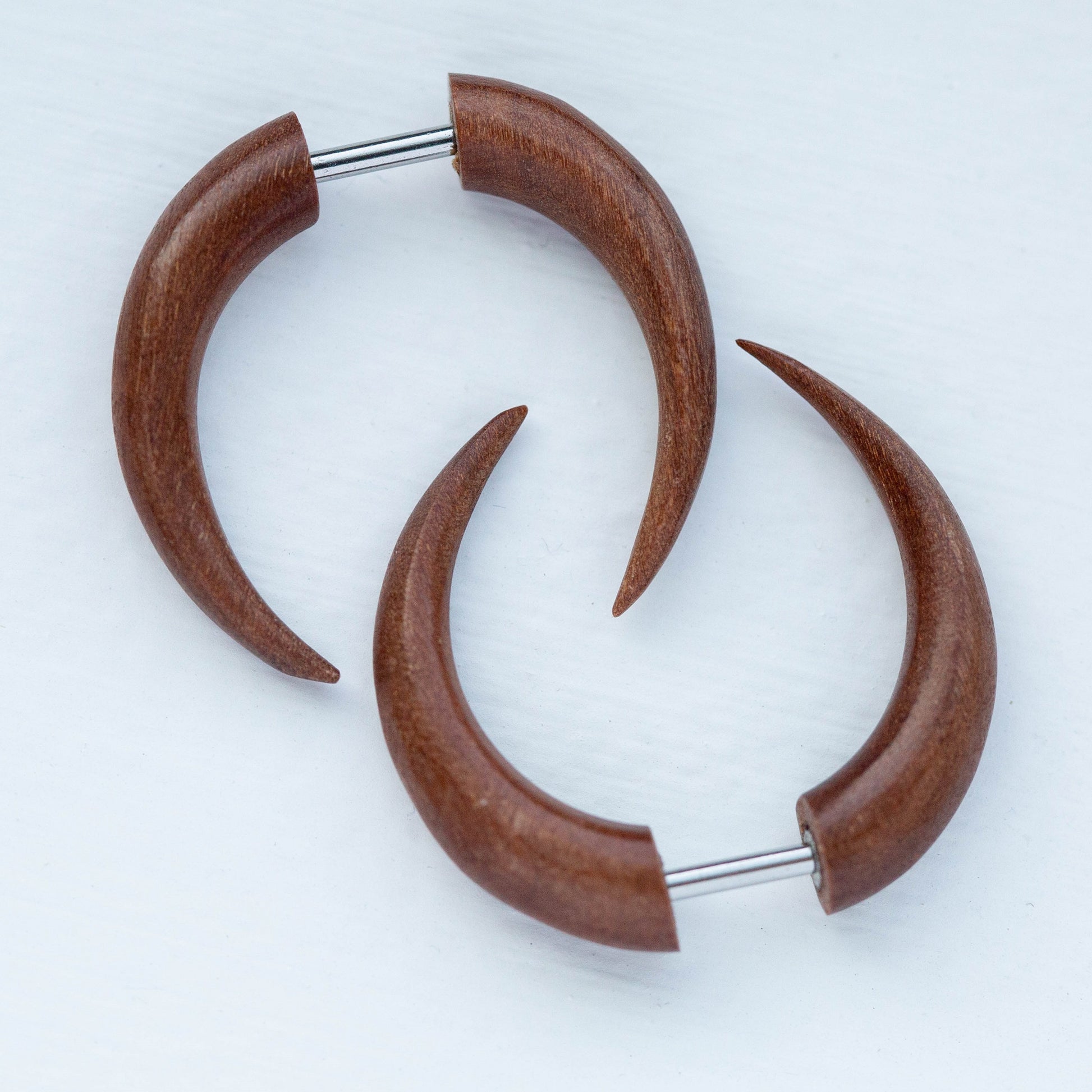 Organic Sawo Wood Fake Pincher Taper Plugs - Stainless Steel