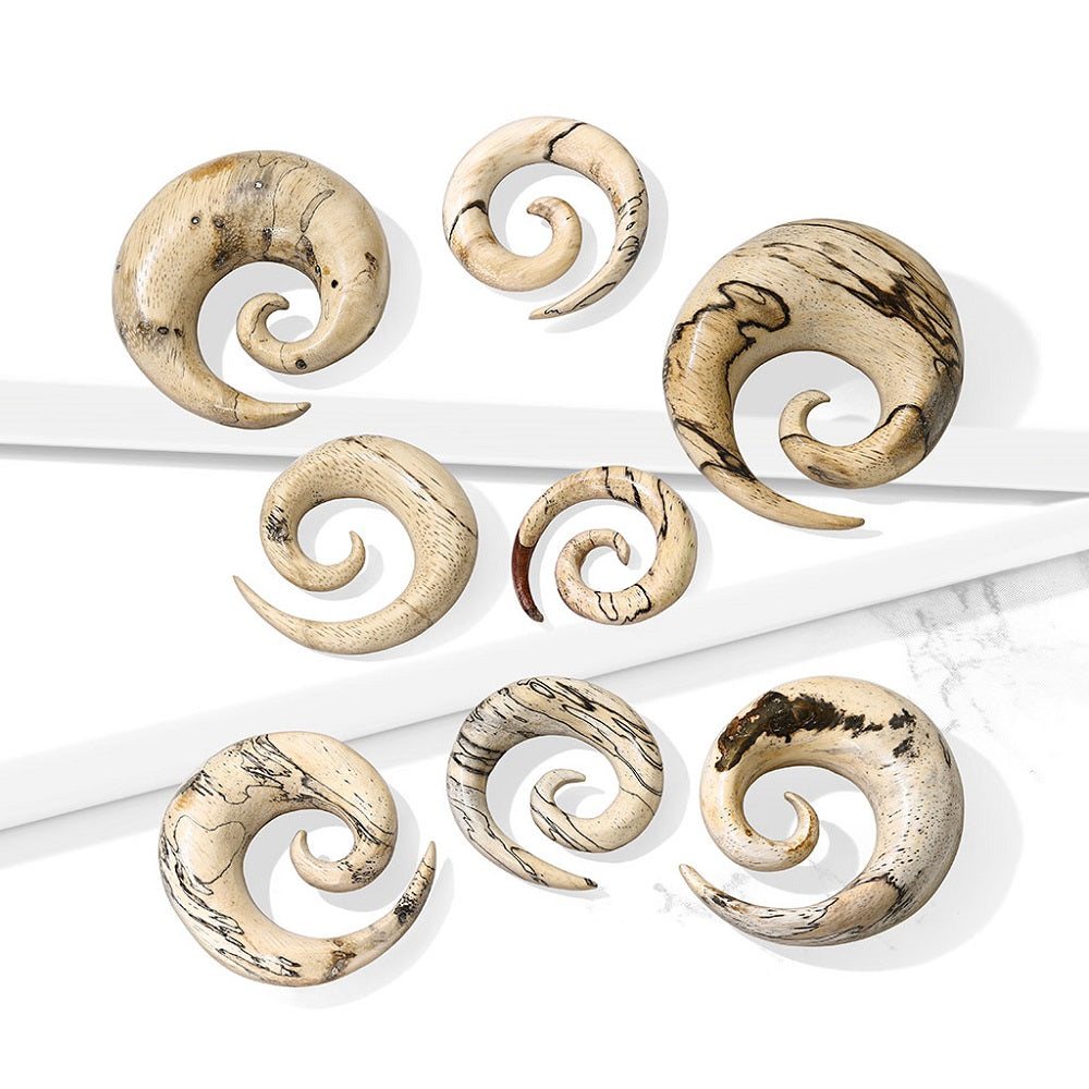 Organic Spalted Tamarind Wood Spiral Tapered Hanger Ear Plugs - Pair