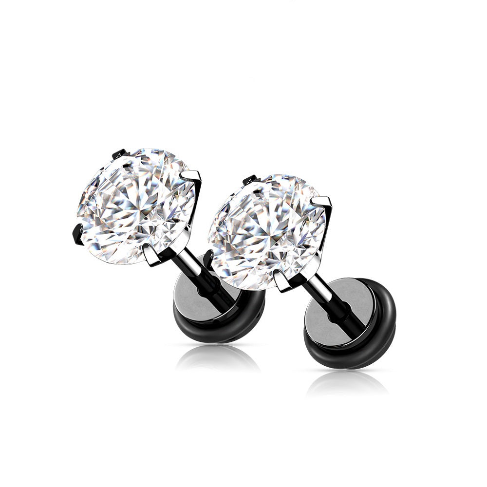 Prong Set CZ Crystal Fake Cheater Plug Earrings - Stainless Steel - Pair