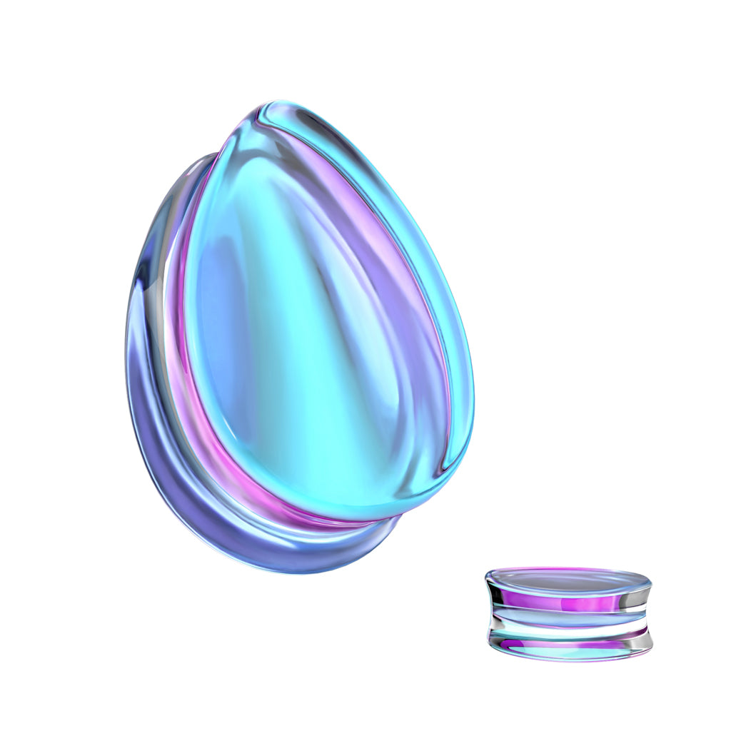 Purple Iridescent Glass Tear Drop Shaped Double Flared Plug Gauges - Pair