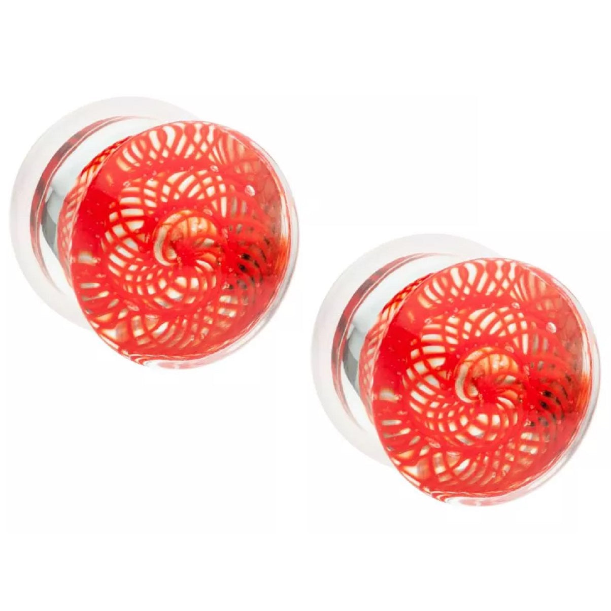 Red Woven Spiral Design Glass Single Flare Plugs - Pair
