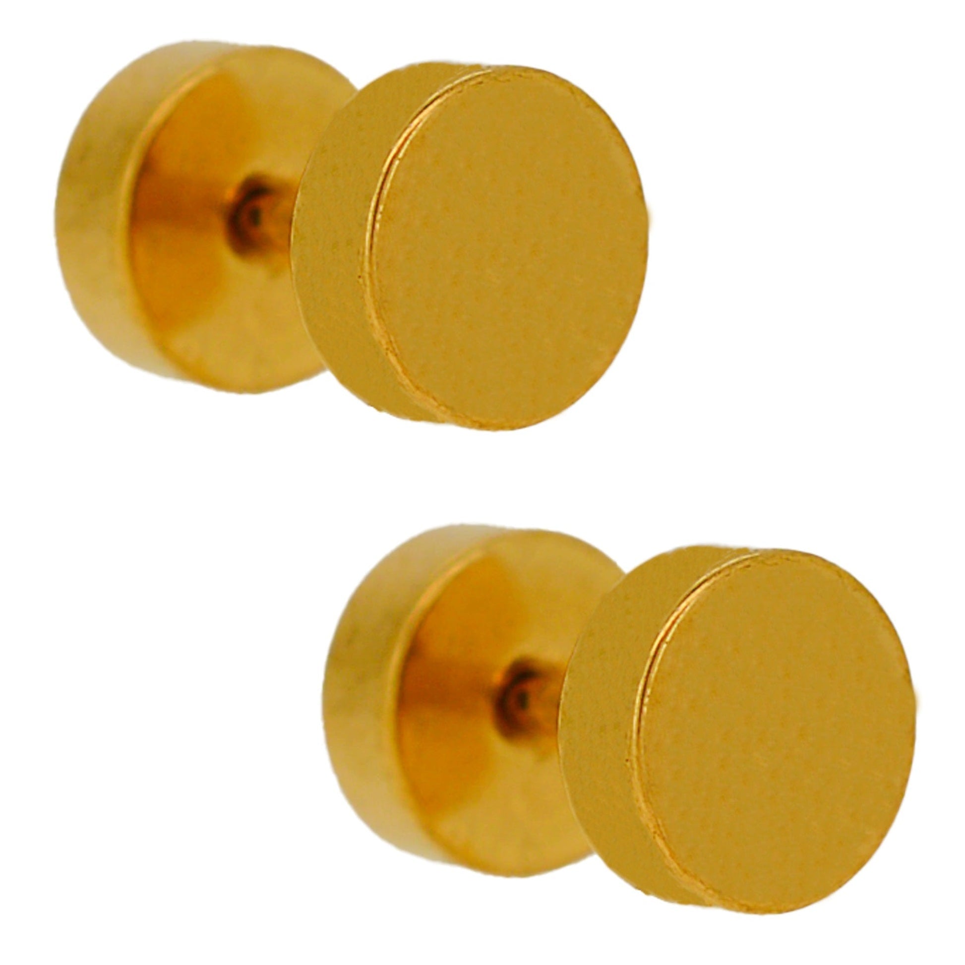 Round Disc Fake Cheater Plug Earrings - 316L Stainless Steel - Pair
