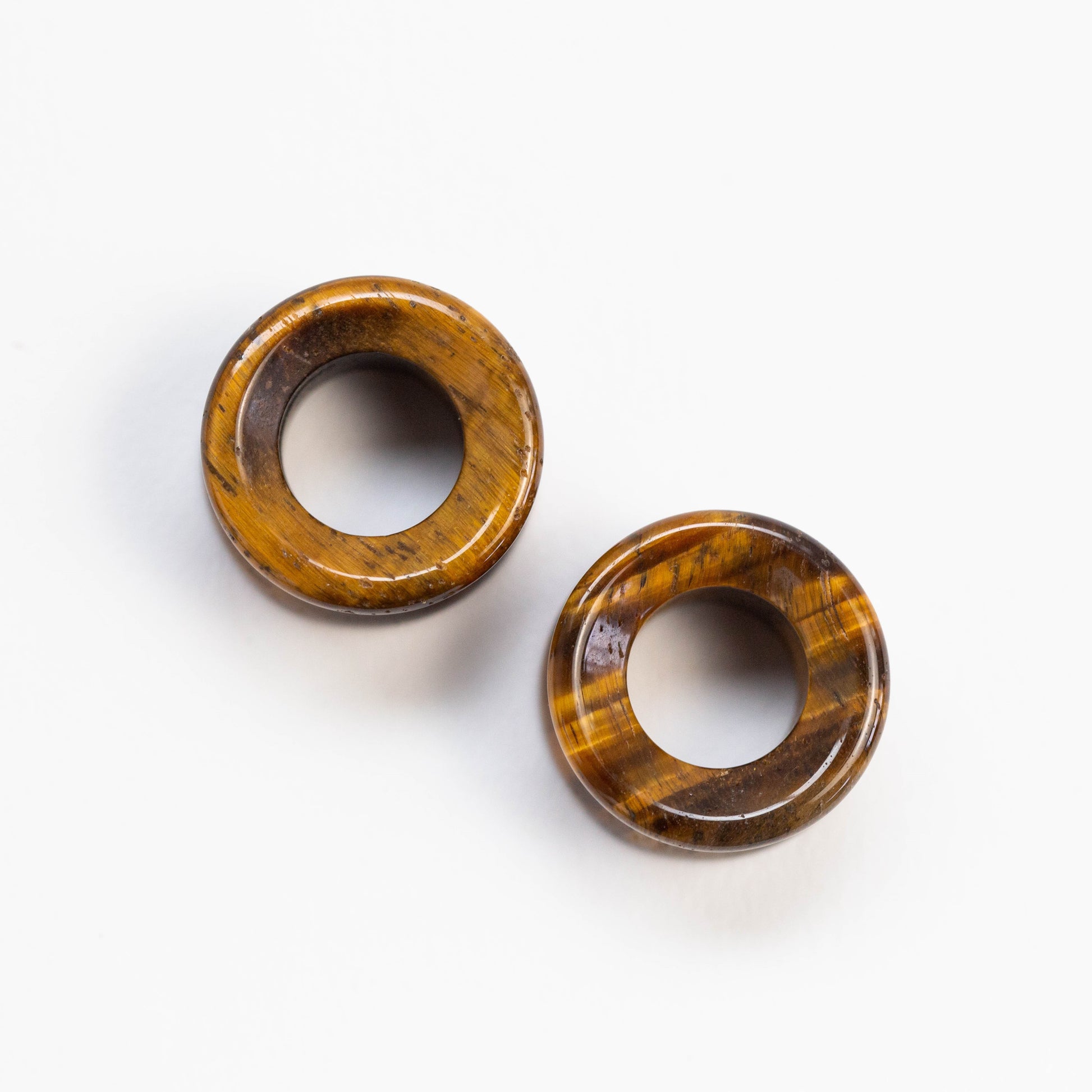 Tiger Eye Stone Double Flared Saddle Tunnels - Pair