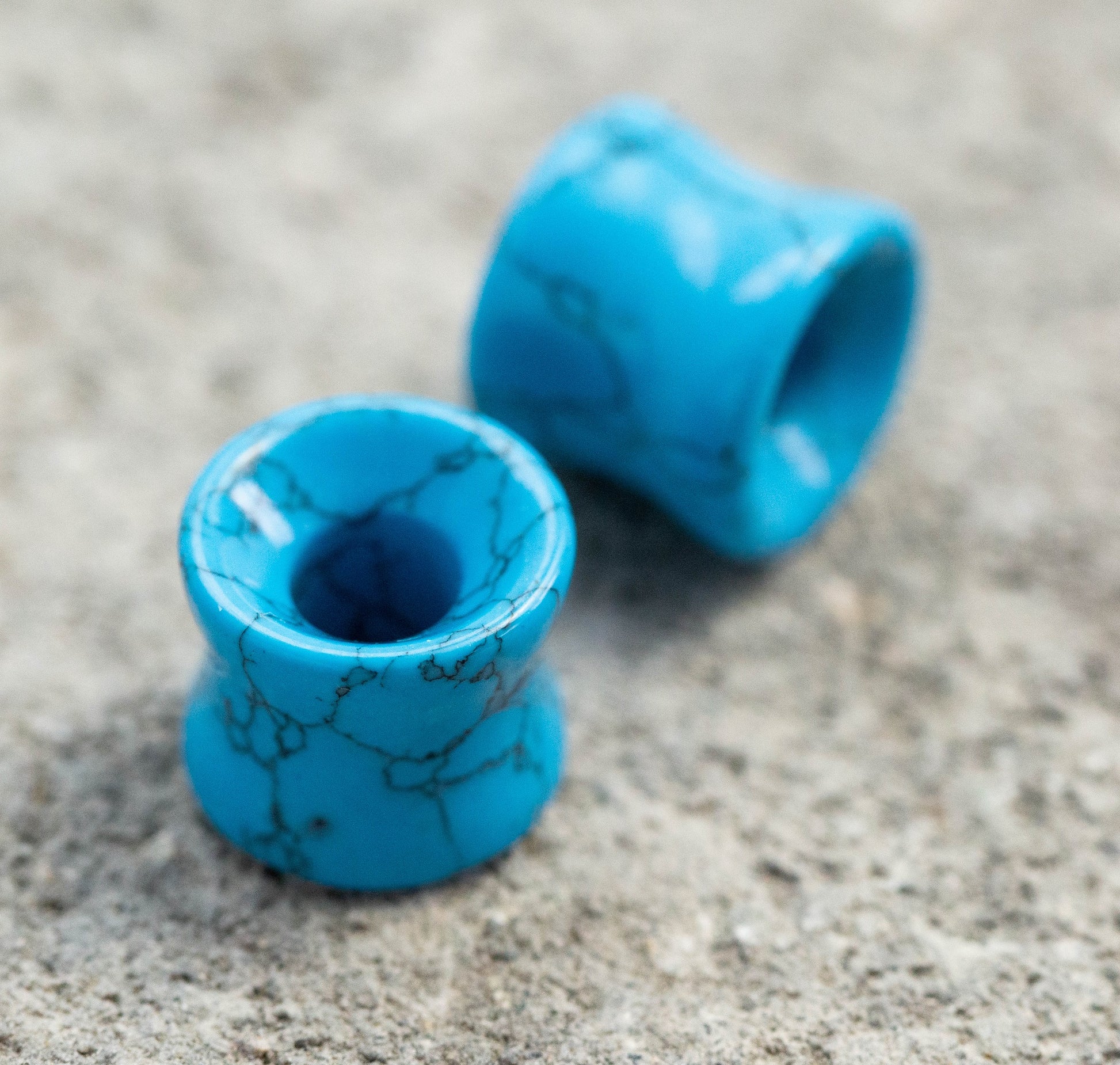 Turquoise Stone Double Flared Saddle Tunnels - Pair