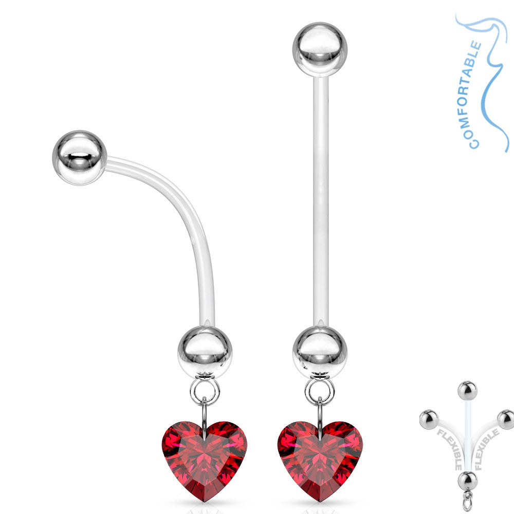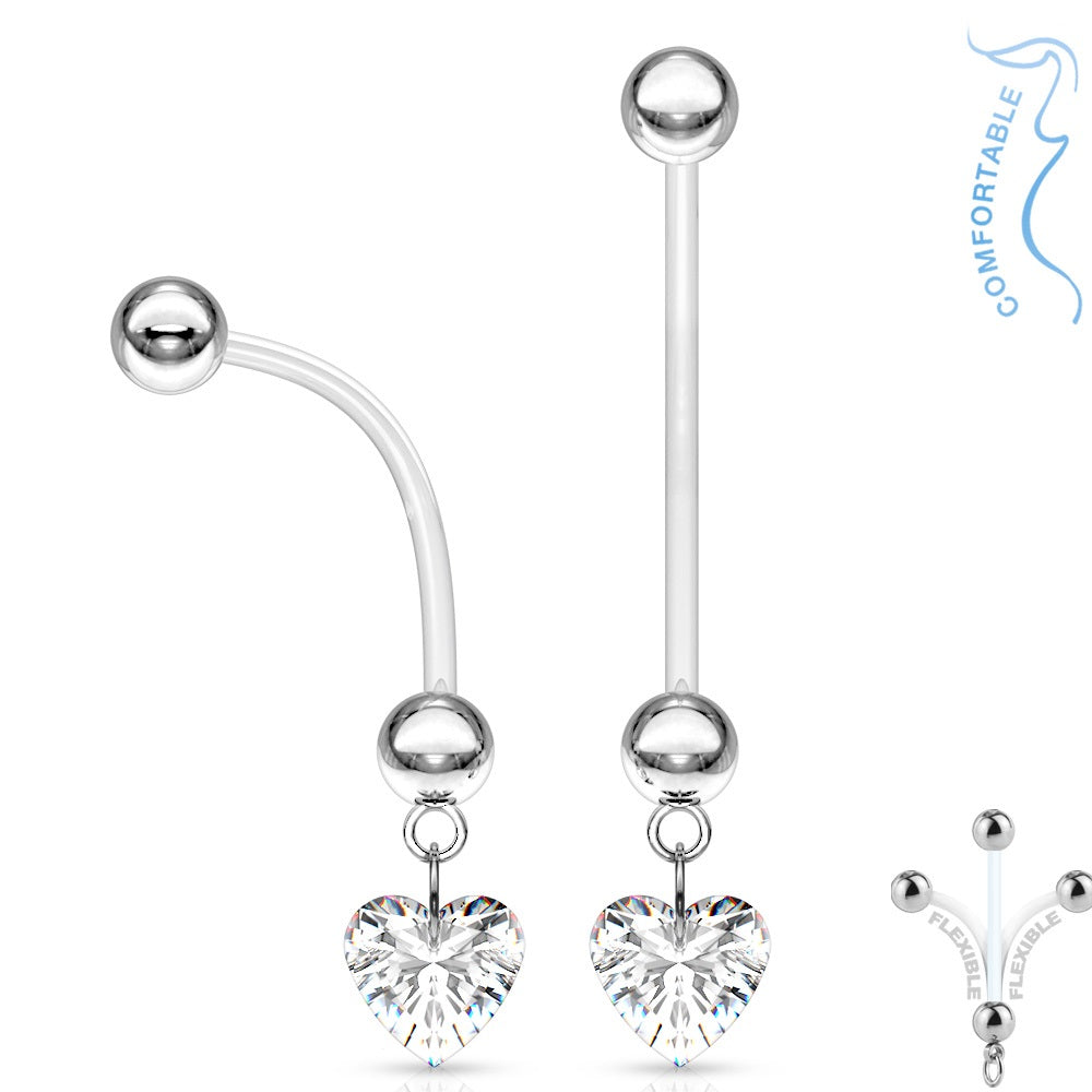 Dangling CZ Crystal Heart Maternity Pregnancy Belly Button Ring - Bioflex