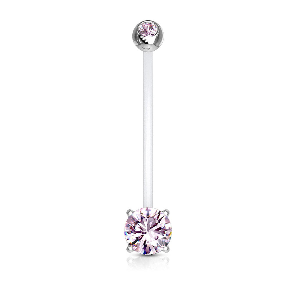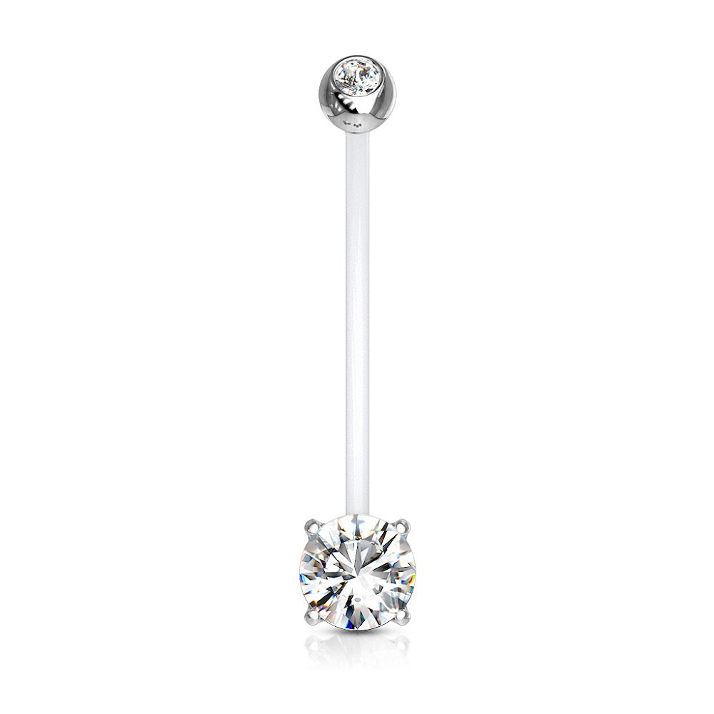 Double Jeweled Prong Set Round CZ Crystal Pregnancy Maternity Bioflex Belly Button Ring - Stainless Steel