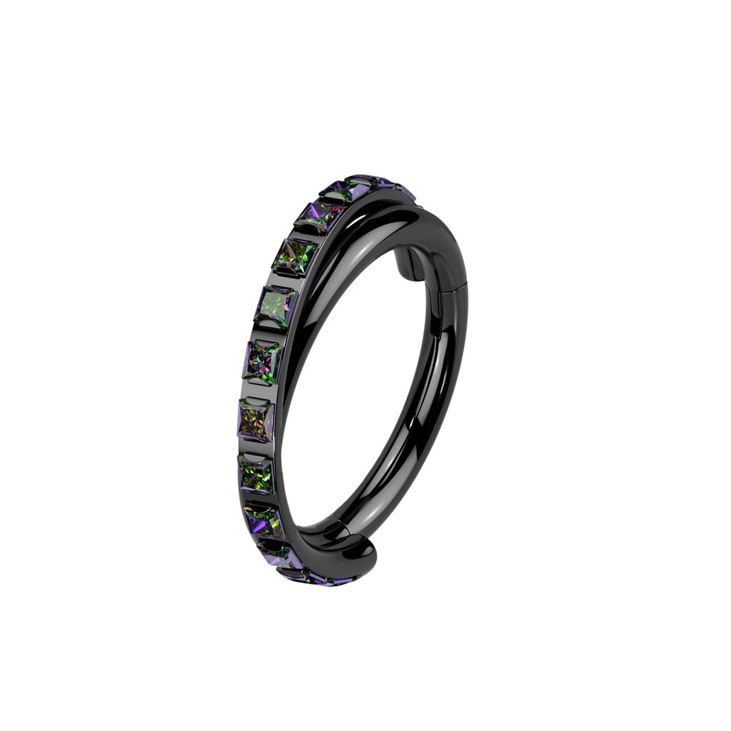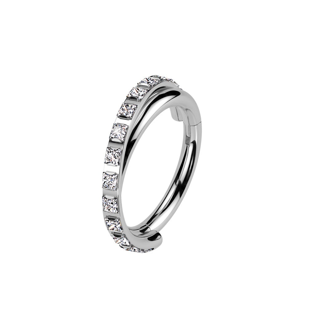 CZ Crystal Paved Double Hoop Criss Cross Hinged Segment Clicker Ring - ASTM F-136 Implant Grade Titanium