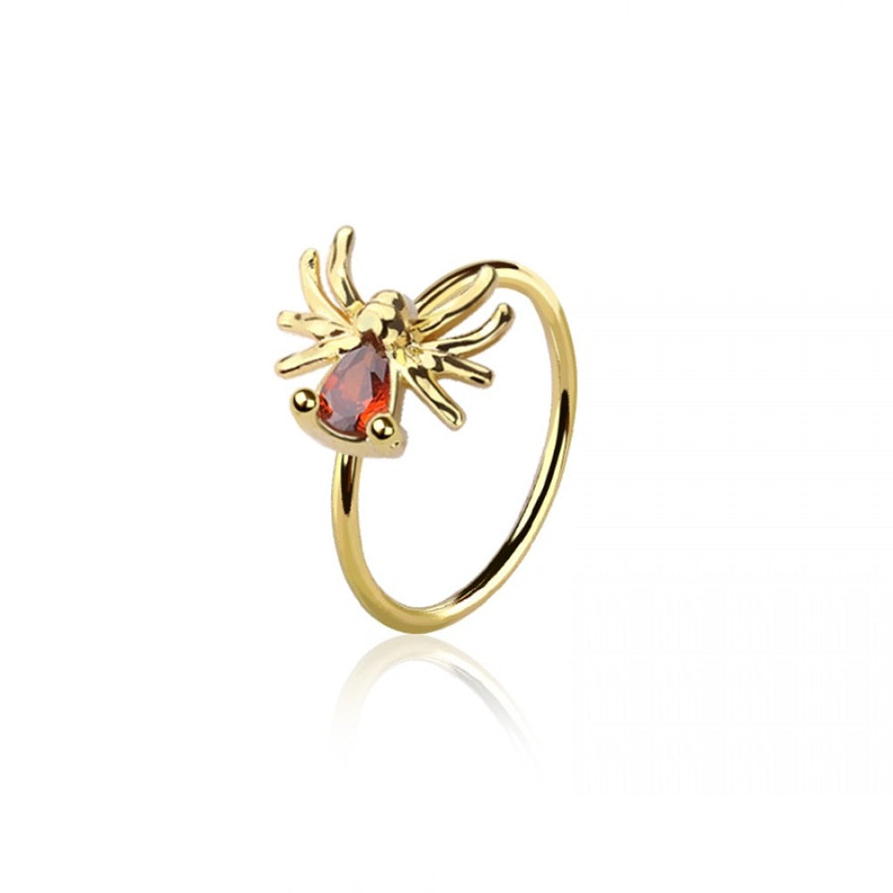 CZ Crystal Red Belly Spider Bendable Nose Ring - 316L Stainless Steel