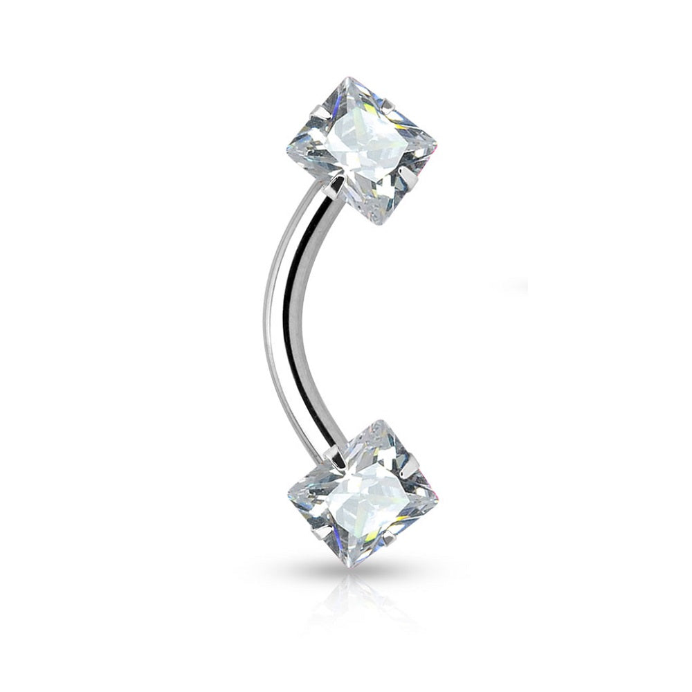 Prong-Set Clear CZ Gem Internally Threaded Curved Barbell - Stainless Steel
