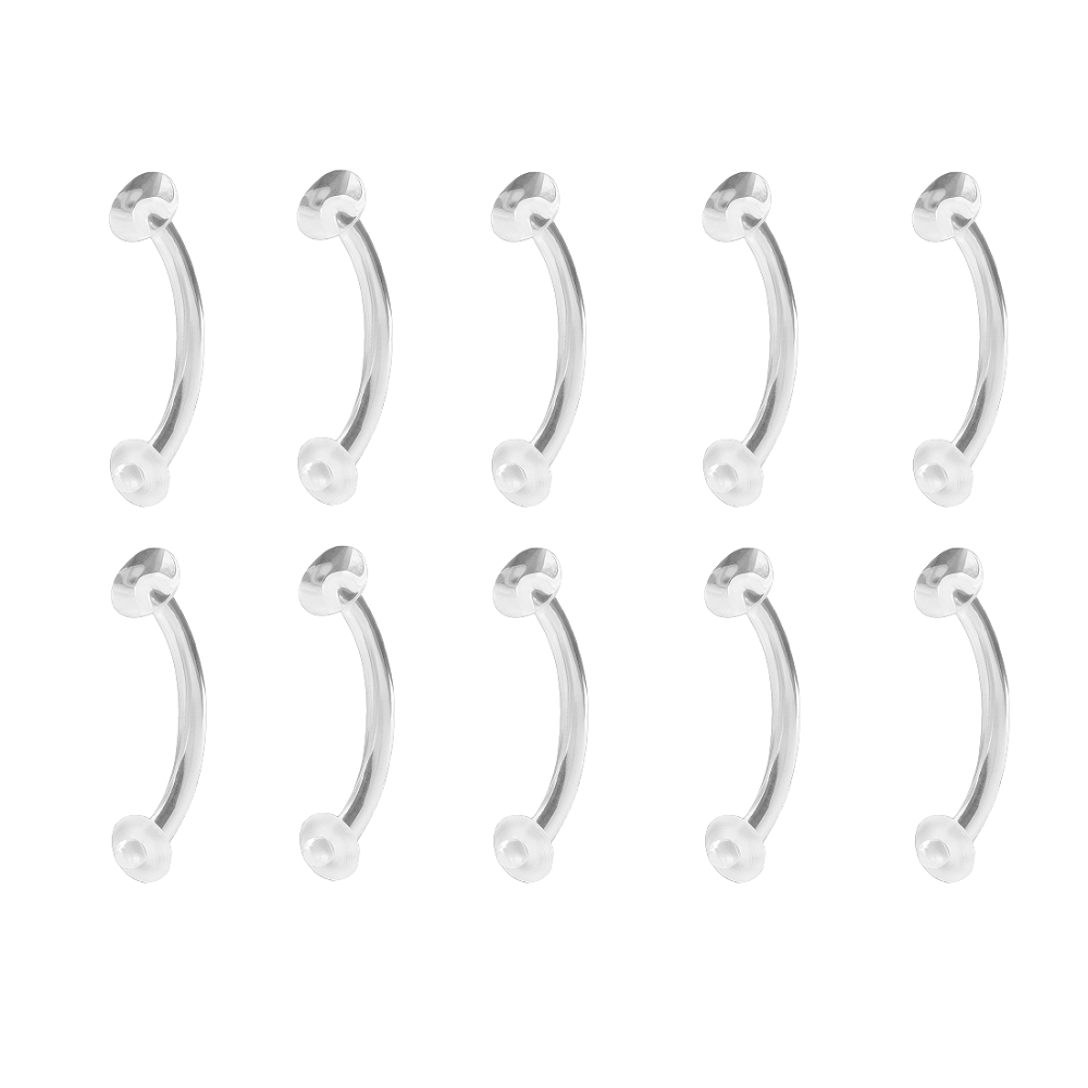 Set of 10 Clear Acrylic Flexible Curved Eyebrow Ring Piercing Retainers