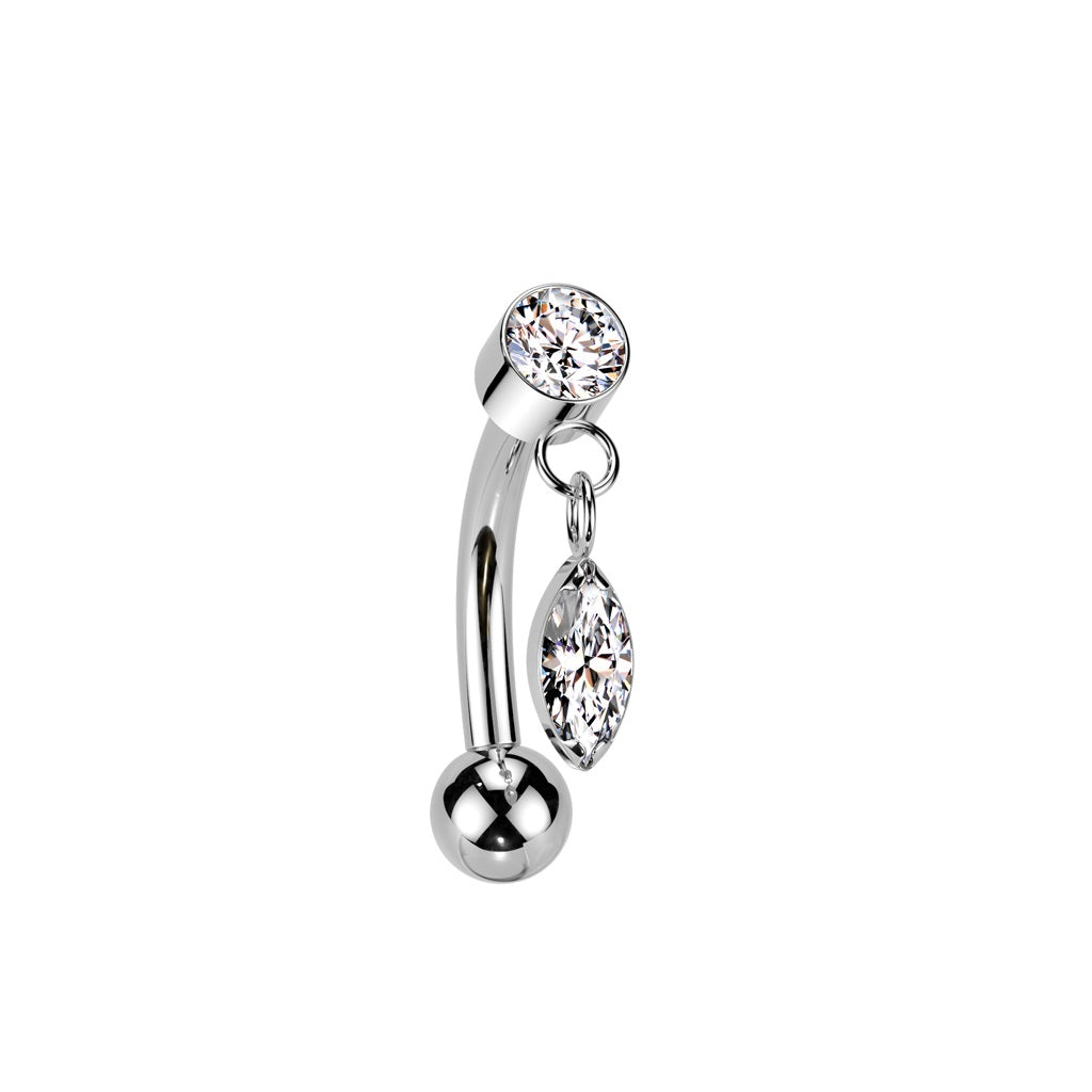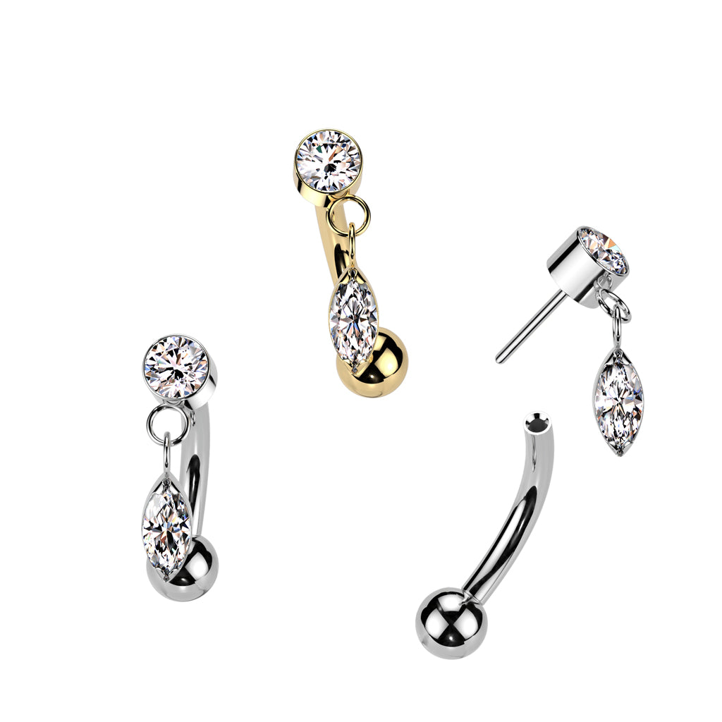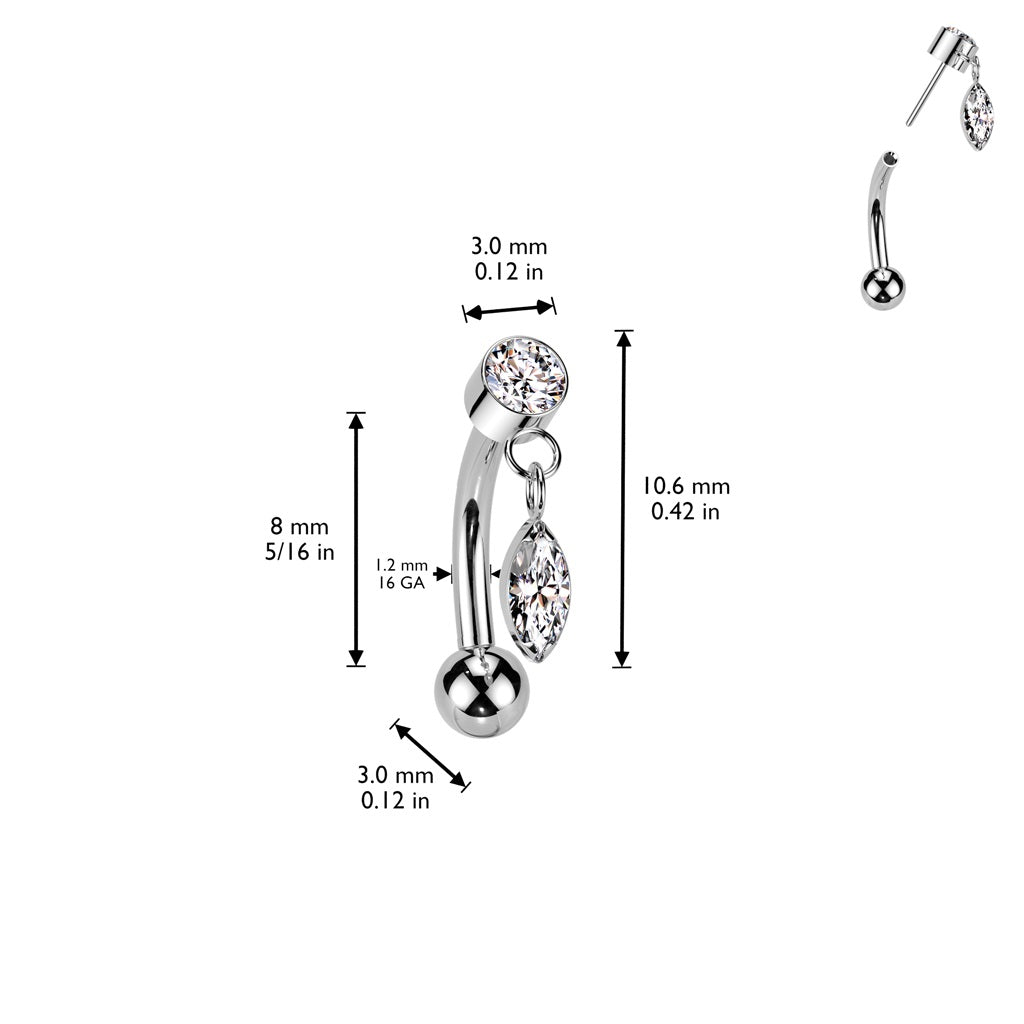Threadless Push-In Dangling CZ Crystal Marquise Eyebrow Curved Barbell - ASTM F-136 Implant Grade Titanium