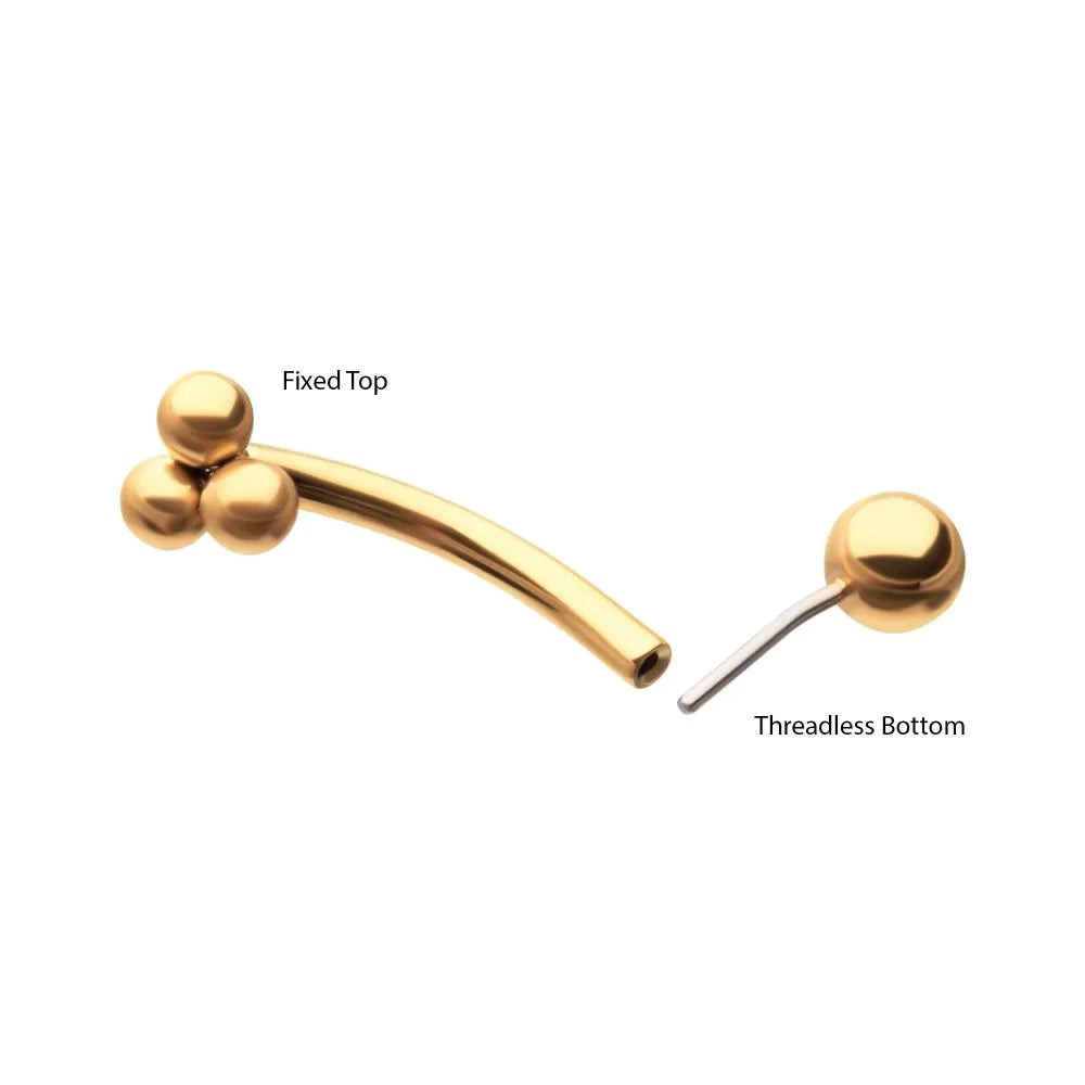 Threadless Push-In Triple Ball Cluster Top Eyebrow Curved Barbell - 24kt Gold PVD ASTM F-136 Implant Grade Titanium