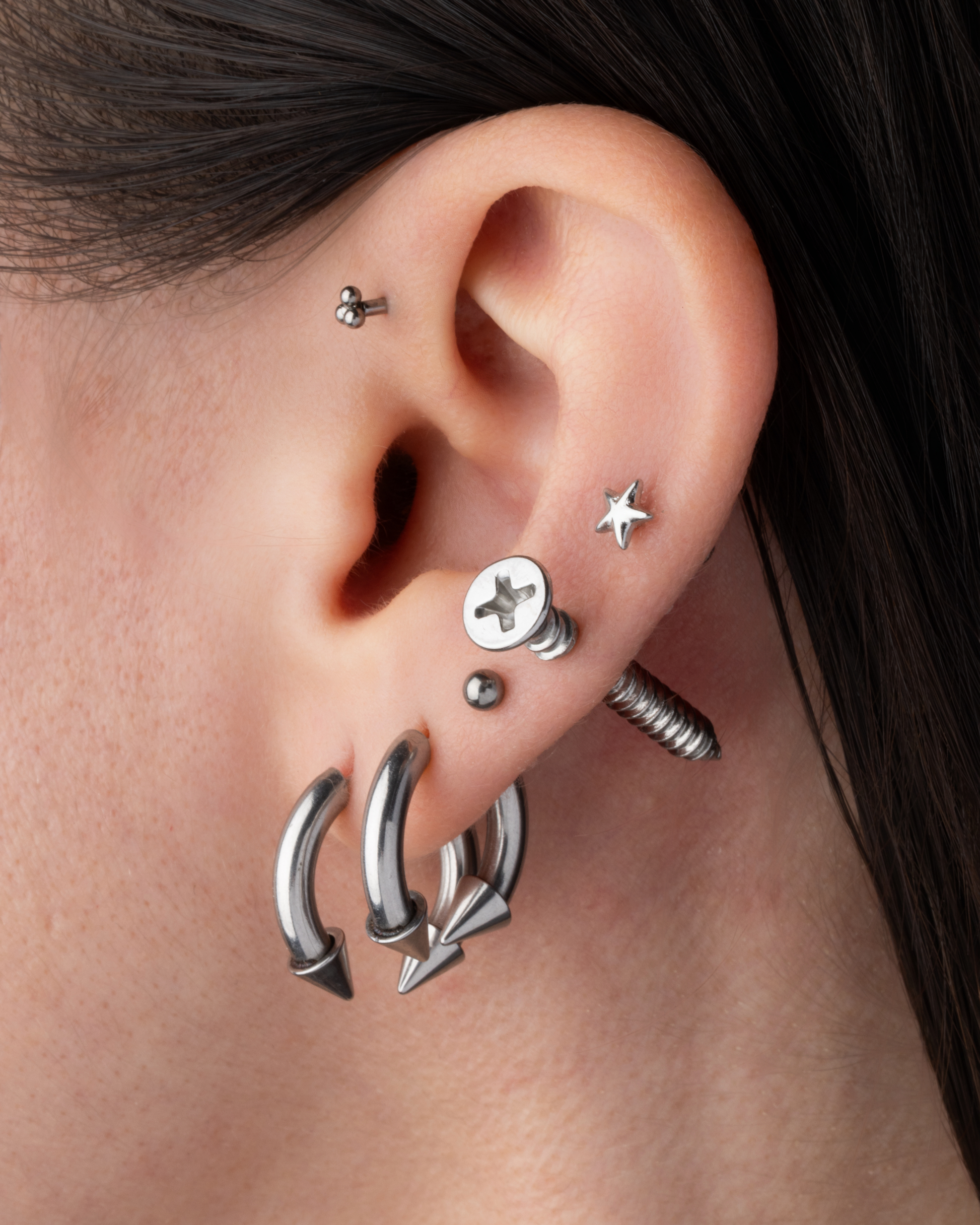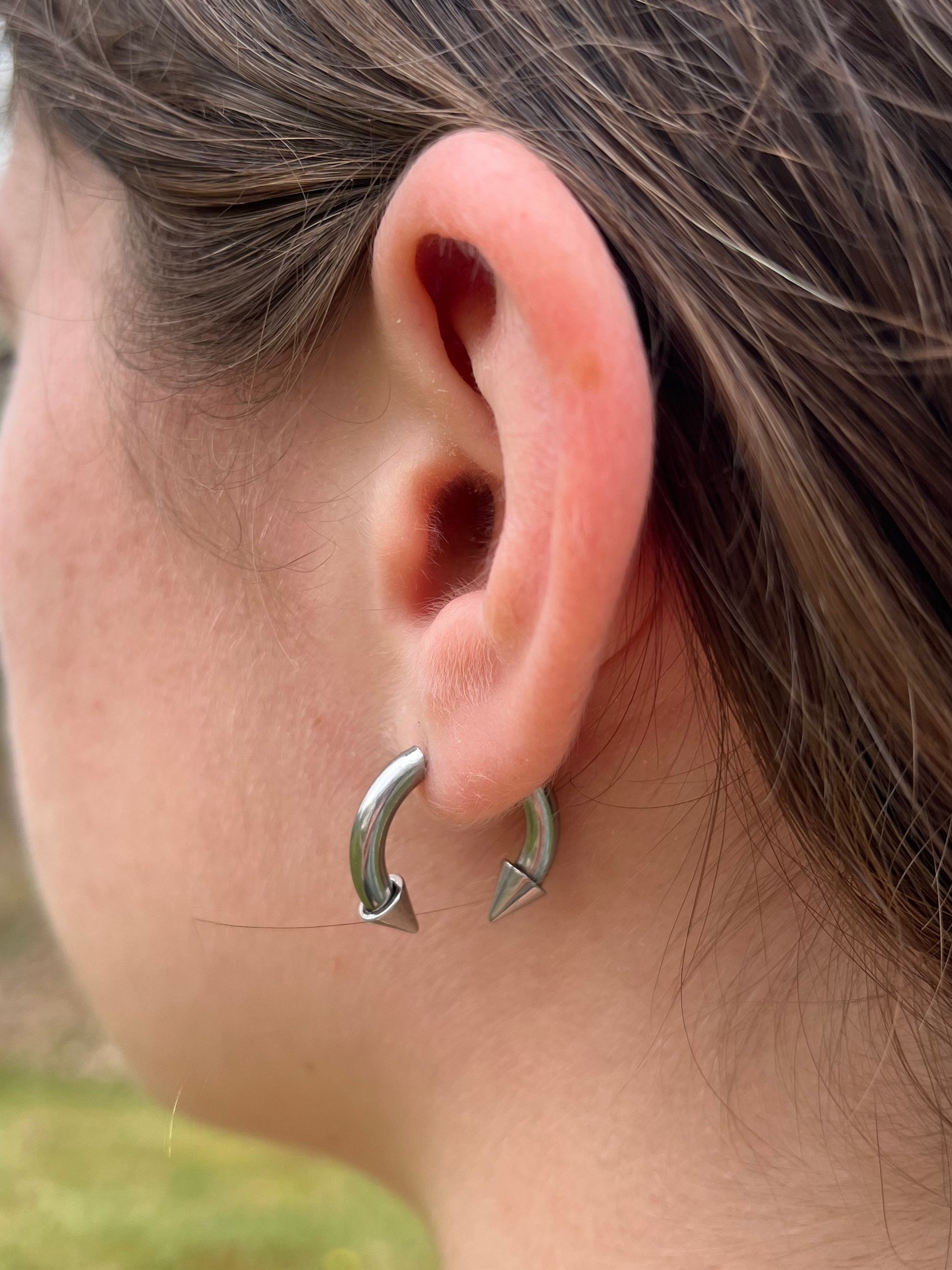 Fake Gauge Horseshoe Barbells with Spikes- Pair - 316L Stainless Steel